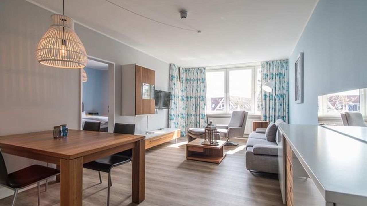 Suite Typ 2, 45 qm Wohnlichkeit strahlt diese 45 qm, großzügig eingerichtete Suite für max. 2 Erwachsene aus. Gradlinige Formen und Details sorgen für ein behagliches Ambiente. Ankommen und sofort in die Urlaubszeit einsteigen….Wohnraum mit Sitz- und Essecke, Küchenzeile, Balkon oder Terrasse, Bad mit Dusche und WC. TV und W-Lan.