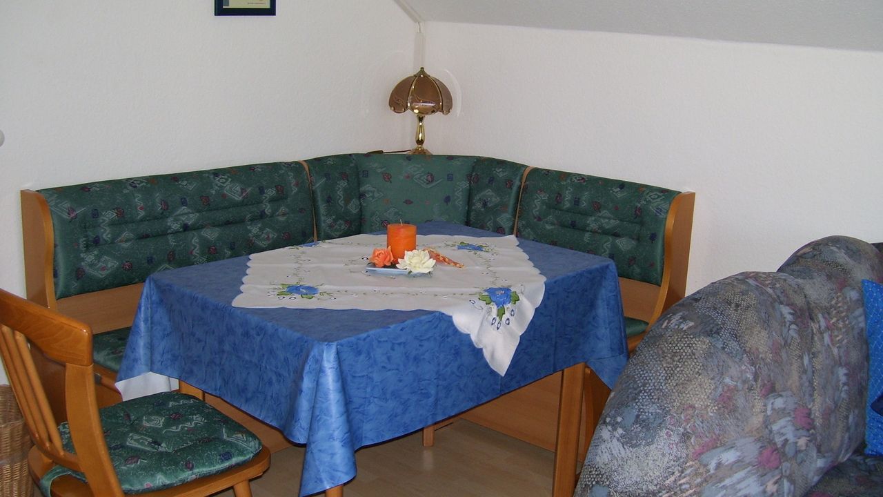 Die Ferienwohnung besteht aus 2 Schlafzimmer mit jeweils einem Doppelbett (wobei jedes Schlafzimmer mit SAT-TV ausgestattet ist), ein Wohn-Esszimmer mit einem ca 12 m² Balkon, (dieser ist als Sonnenschutz mit einer Markise bestückt) SAT-TV, DVD Player, CD Radio und Wlan Internet Zugang und Schlafcouch, einer komplett eingerichteten Küche mit allen erdenklichen E-Geräten wie Herd mit Backofen und 4Platten Ceran Feld, Abzugshaube mit Abluft, Kühlschrank, Spülmaschine und Mikrowelle, Kaffeemaschine, Toaster, Eierkocher, Wasserkocher, Mixer und Entsafter usw und einem Bad mit Dusche und fester Duschabtrennung und WC. Natürlich ist in dem Bad auch ein Spiegelschrank mit 3 beweglichen Türen ein Kosmetikspiegel wie auch ein Föhn. Ein Bügeleisen mit Bügelbrett steht Ihnen in dieser Ferienwohnung auch zur Verfügung.