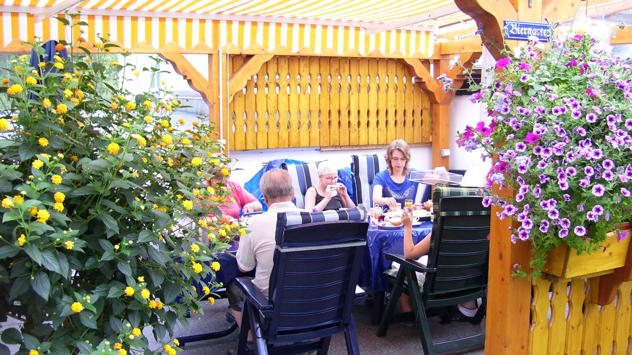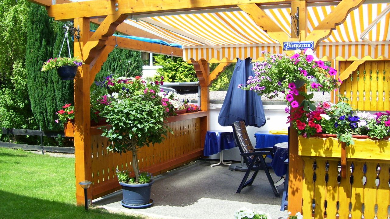 Hinter dem Haus der 2 Ferienwohnungen steht für unsere Gäste eine große überdachte Terrasse zum geselligen Beisammensein und zum Grillen zur Verfügung.