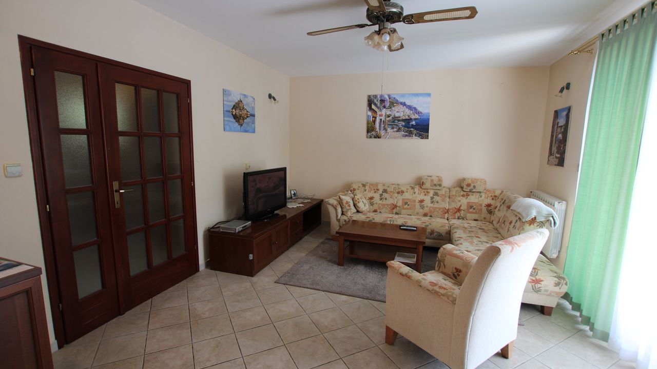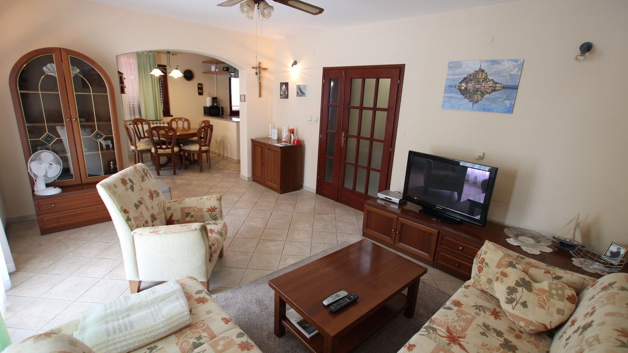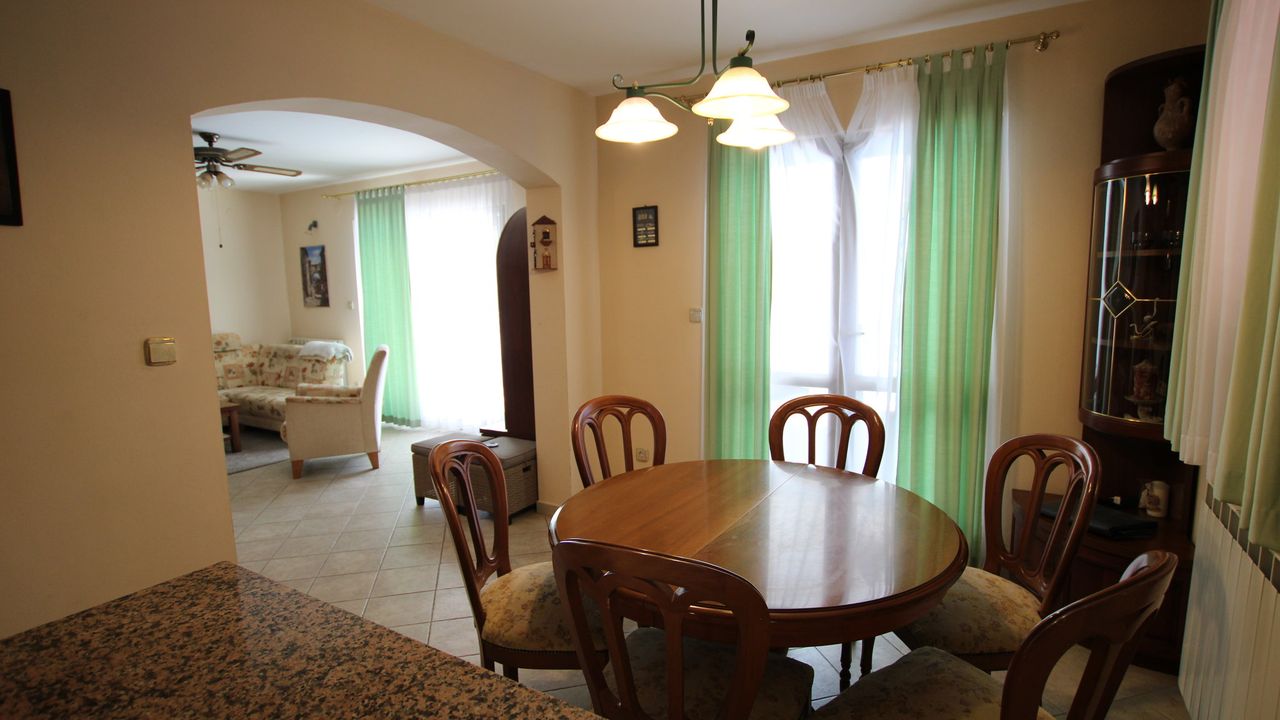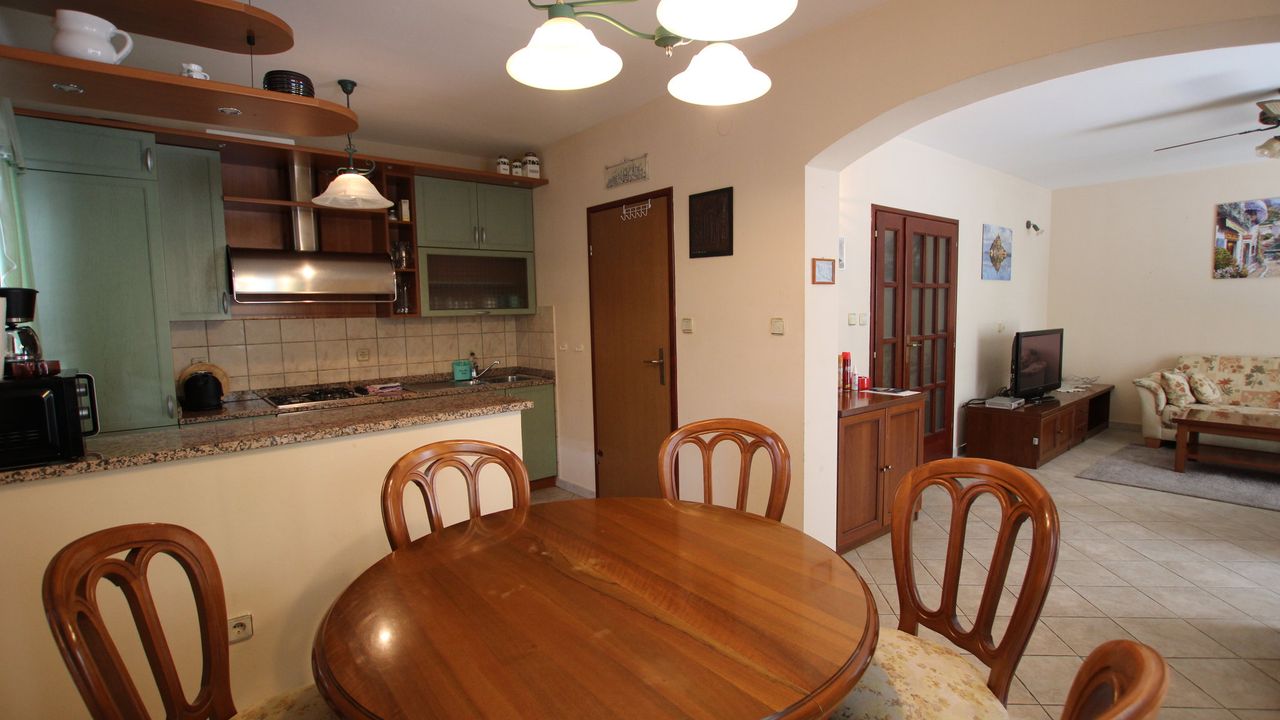 Die 110 m2 große Villa Viktoria erstreckt sich über zwei Etagen. Das Haus ist Teil einer Doppelhaushälfte mit eigenem Eingang zu einem eigenen eingezäunten Hof.Das Erdgeschoss besteht aus einer Küche, einem Esszimmer und einem Wohnzimmer mit direktem Zugang zur Terrasse und zum Pool.