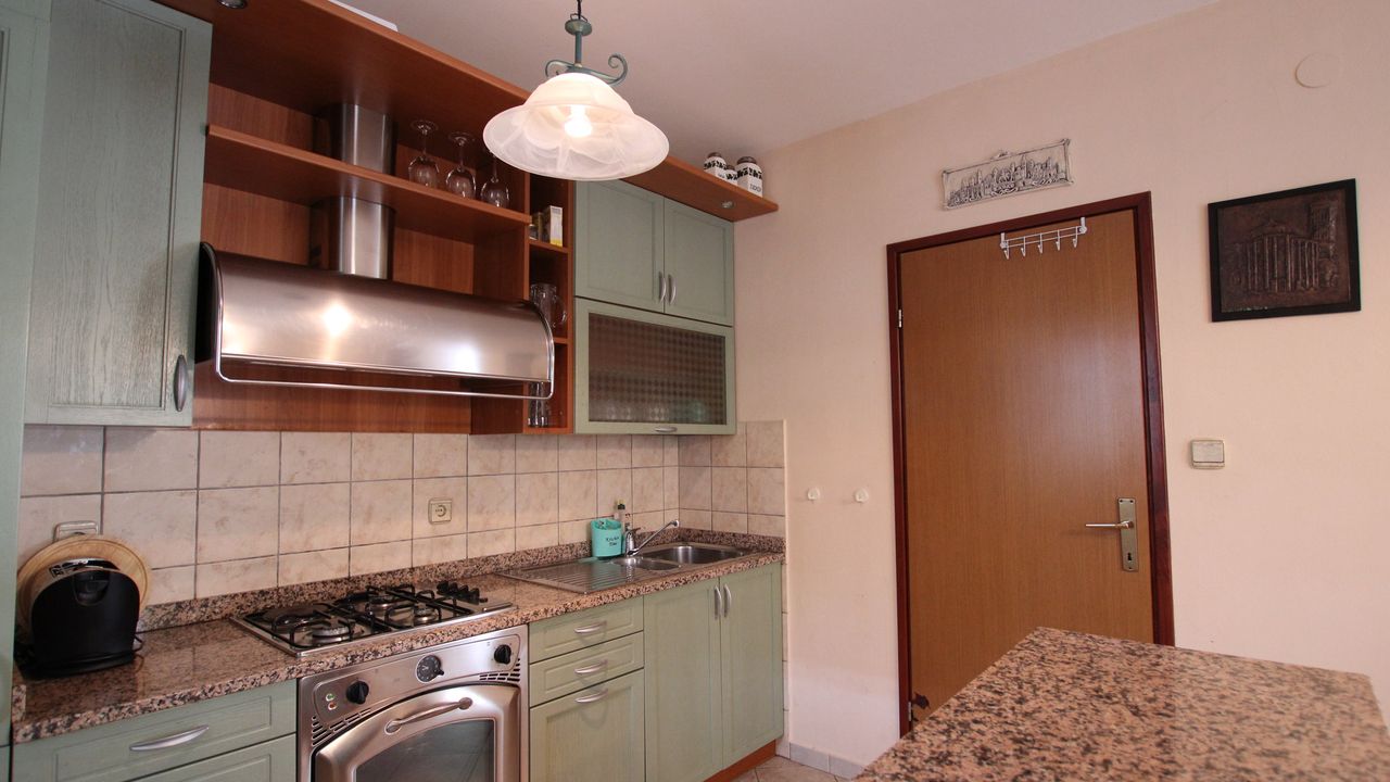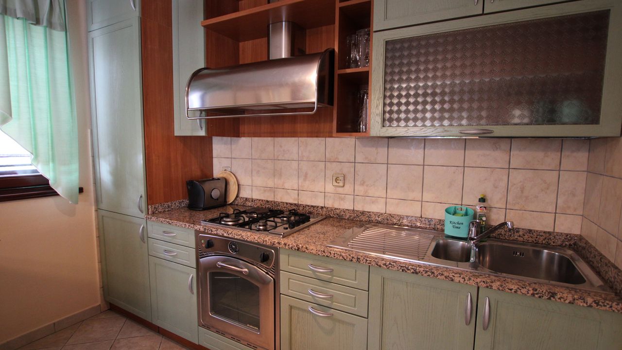 Die Küchenausstattung besteht aus: Herd (3 Gas + 1 Elektro), Backofen, Kühlschrank mit Gefrierfach, Dunstabzugshaube und Filterkaffeemaschine. Im Wohnbereich mit Sofa befindet sich ein Flachbild-Sat-TV. WLAN ist im ganzen Haus verfügbar.