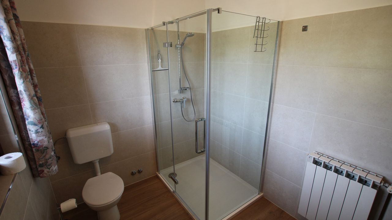 Auf der ersten Etage befinden sich 3 Schlafzimmer und ein Badezimmer mit Dusche, WC und Waschbecken.
