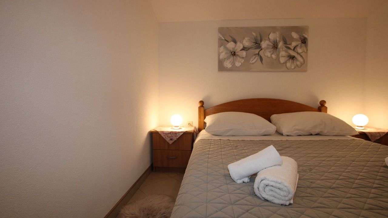 Familienapartment mit 1 Schlafzimmer und einer Couch im Wohnzimmer für 2 Personen.Es befindet sich im ersten Stock eines Familienhauses mit insgesamt 3 Wohnungen, mit Parkplatz im geschlossenen Hof und einem gemeinsamen Grillplatz im Garten.