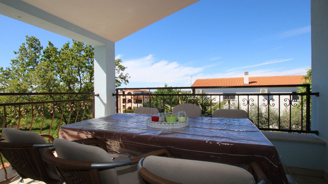 Ein schöner überdachter Balkon mit Blick ins Grüne sorgt für angenehme Momente.