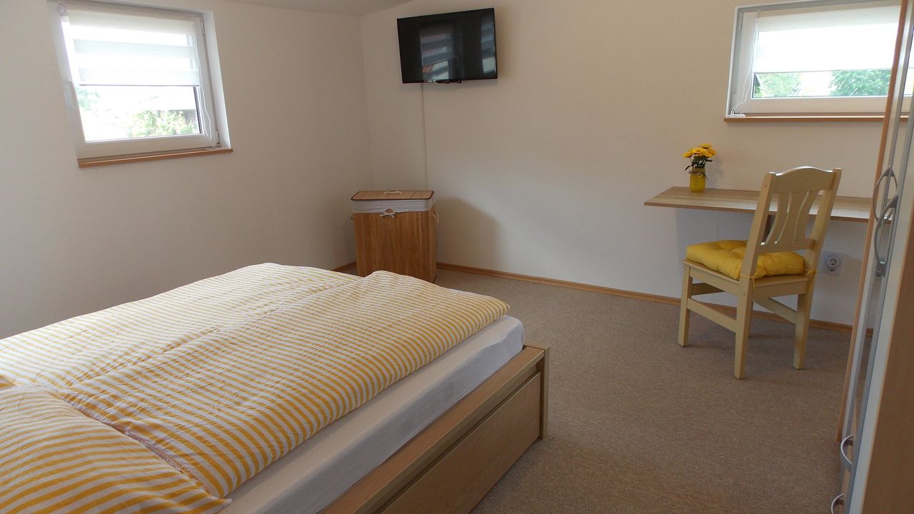- Großes Schlafzimmer mit Doppelbett und Funkplatz für Funkamateure