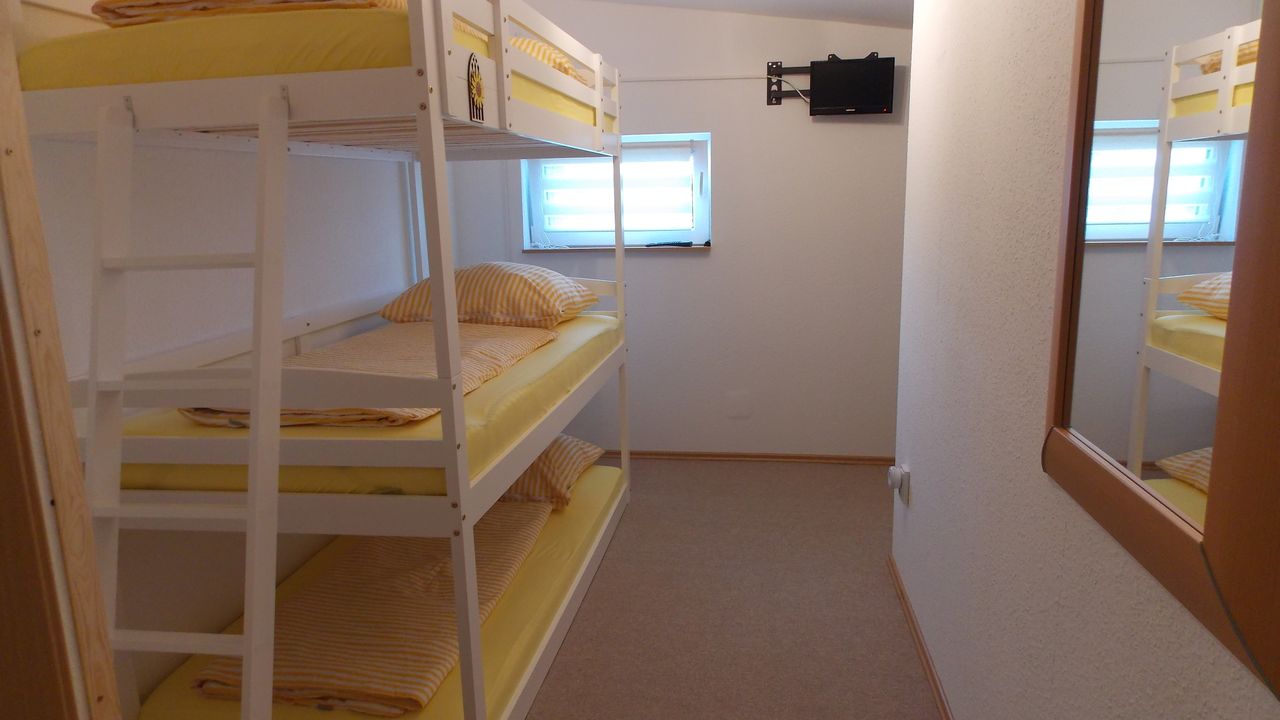 - Kleines Schlafzimmer mit Dreier-Stockbett
