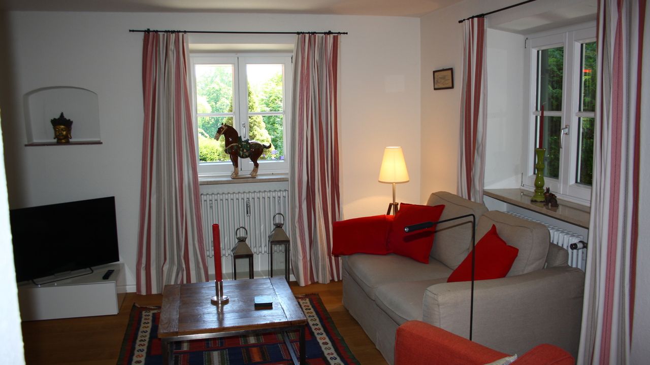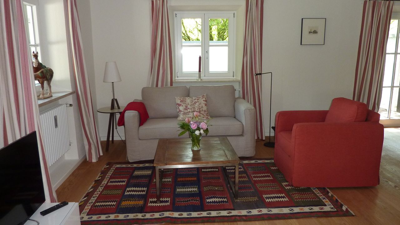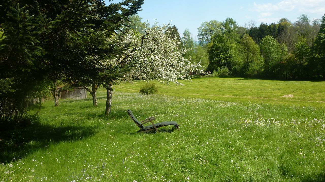Hochwertige Wohnung mit einer besonderen Atmosphäre. In einem alten Landhaus im Landschaftsschutzgebiet.Absolut ruhig gelegen mit einer großzügigen Terrasse und einem großen Garten, in dem Sie unter alten Apfelbäumen in einem Liegestuhl die Seele baumeln lassen können oder auch ein Buch lesen.