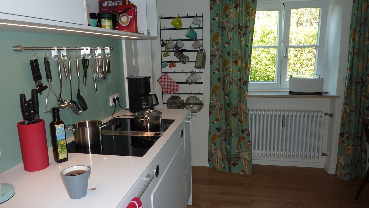 Die Wohnung ist zum Teil mit hochwertigen Antiquitäten eingerichtet. Ihnen steht eine umfangreiche Bibliothek zur Verfügung. Die Bulthaup-Küche ist sehr modern mit einem Induktionsherd und einem BORA Kochfeldabzug. Der Backofen ist auch zum Dampfgaren geeignet.Einen Hund berechnen wir mit 15,- €/Tag.