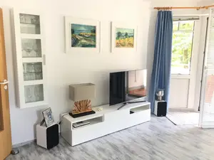 Die Fewo hat 2 Schlafräume( 1 Sr - 1 Doppelbett ( Boxspringbett), 2 Sr - 2 Einzelbetten) sowie ein Bad mit Dusche. W-LAN.
