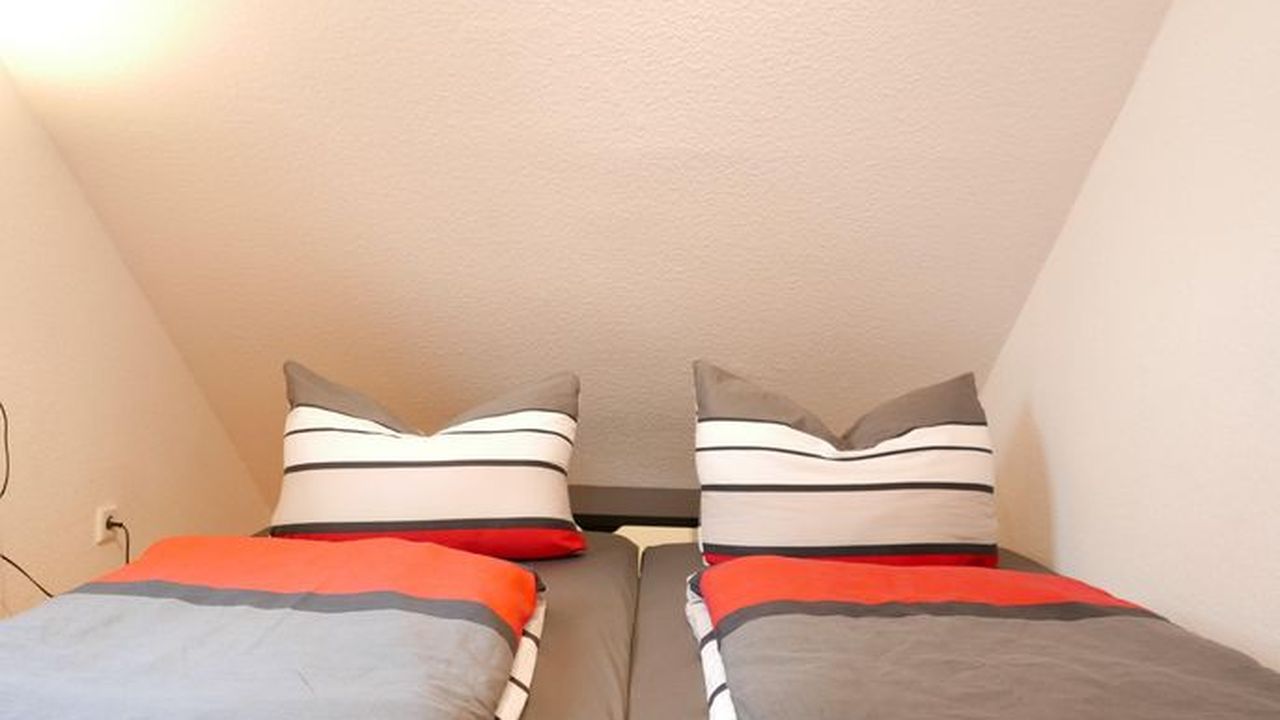 • Ein großes Schlafzimmer mit Doppelbett, ein kleines Schlafzimmer mit zwei Einzelbetten.