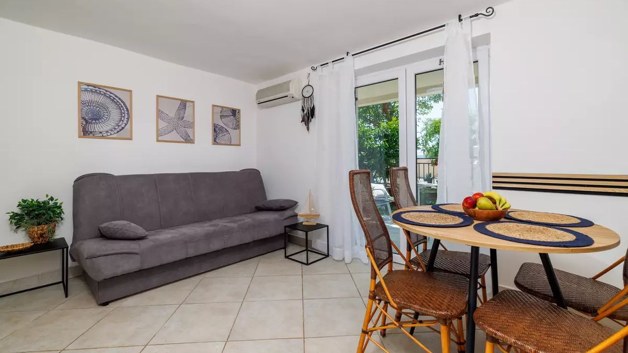 Diese gem and uuml;tliche Ferienwohnung in Dramalj an der wundersch and ouml;nen Kvarner Bucht bietet Platz f and uuml;r zwei Erwachsene und zwei Kinder und ist ideal f and uuml;r einen entspannten Familienurlaub.Die klimatisierten R and auml;ume sorgen auch an warmen Tagen f and uuml;r angenehme Temperaturen, w and auml;hrend Ihnen das kostenfreie WLAN jederzeit zur Verf and uuml;gung steht. Die gro and szlig;z and uuml;gige Terrasse mit Grill l and auml;dt zu gemeinsamen Mahlzeiten und entspannten Abenden im Freien ein. Ein privater Parkplatz direkt am Haus sorgt f and uuml;r zus and auml;tzlichen Komfort.
