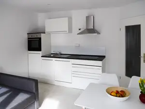 Die neu modernisierte und möblierte Ferienwohnung befindet sich im Erdgeschoss. Sie besteht aus einen Wohnzimmer mit Küche und Esstisch, mit ausklappbarer Schlafcouch, einem Schlafzimmer und einem Duschbad.