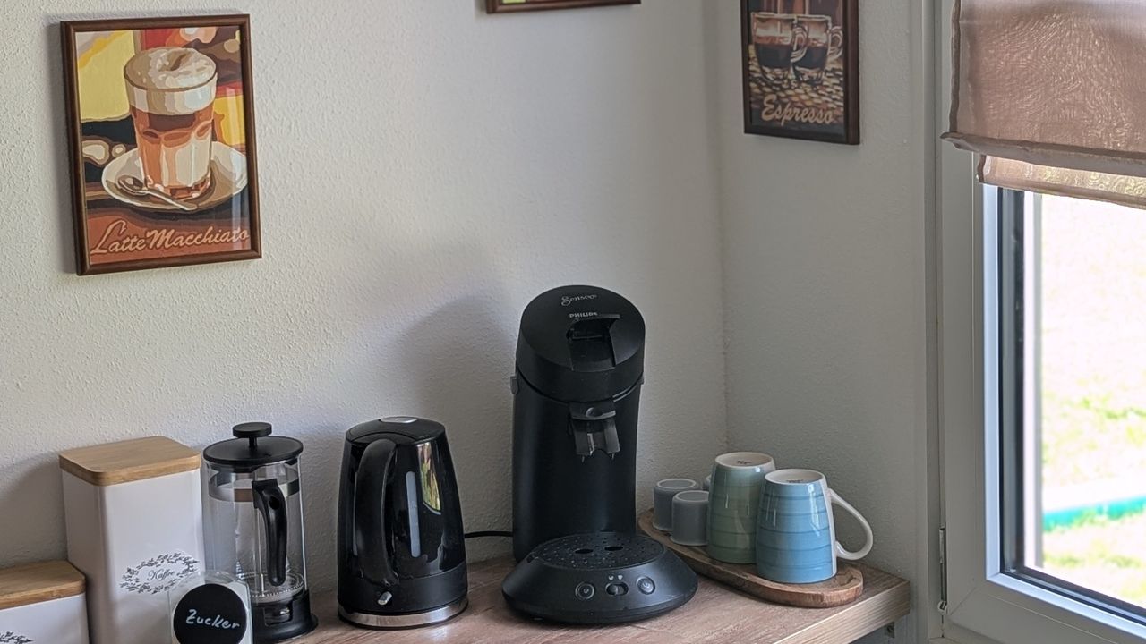 Ein Schlafzimmer + gemütliche Schlafcouch im Wohnbereich. Voll ausgestattete Küche mit Spülmaschine, modernes Bad mit großer Dusche und Waschtrockner, WLAN und TV – alles da für entspannte Urlaubstage.