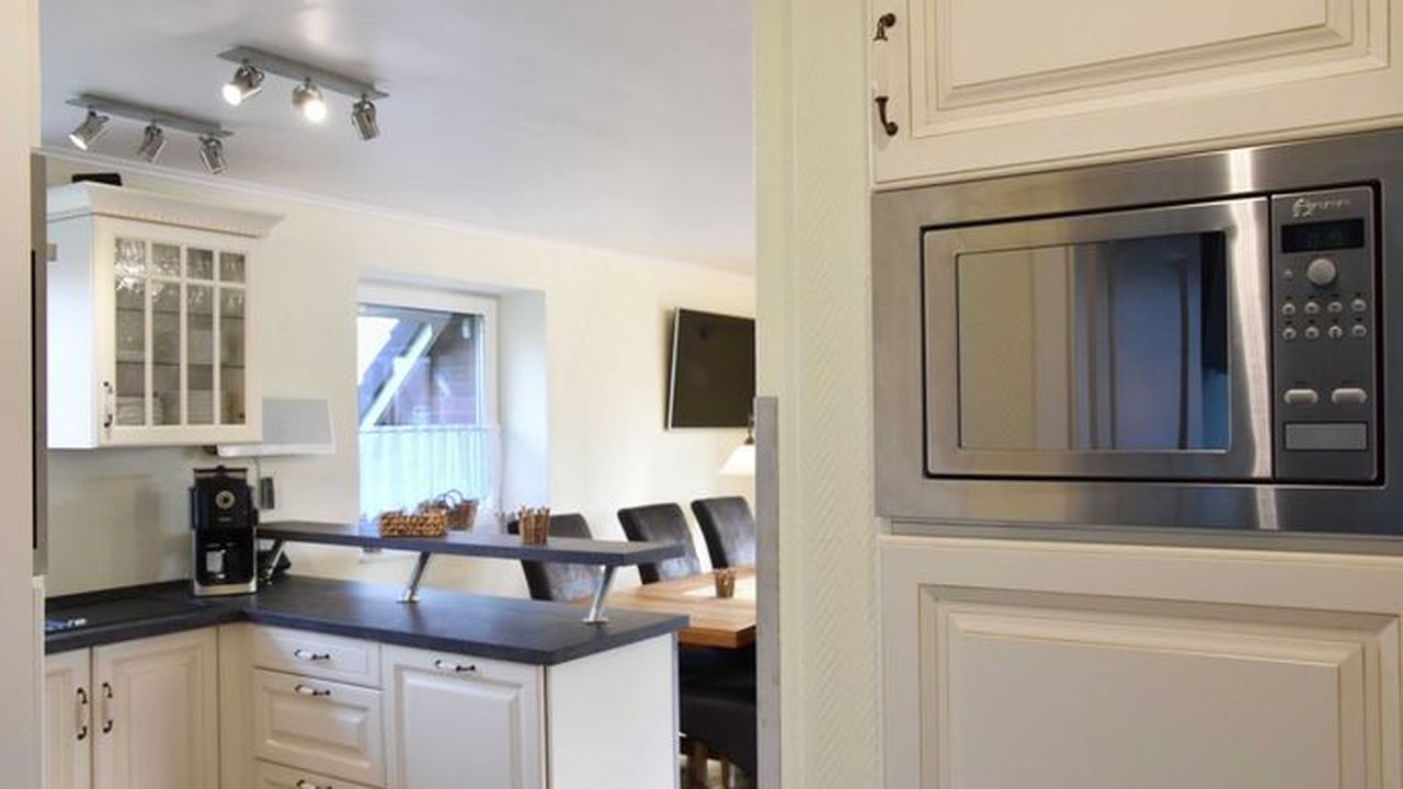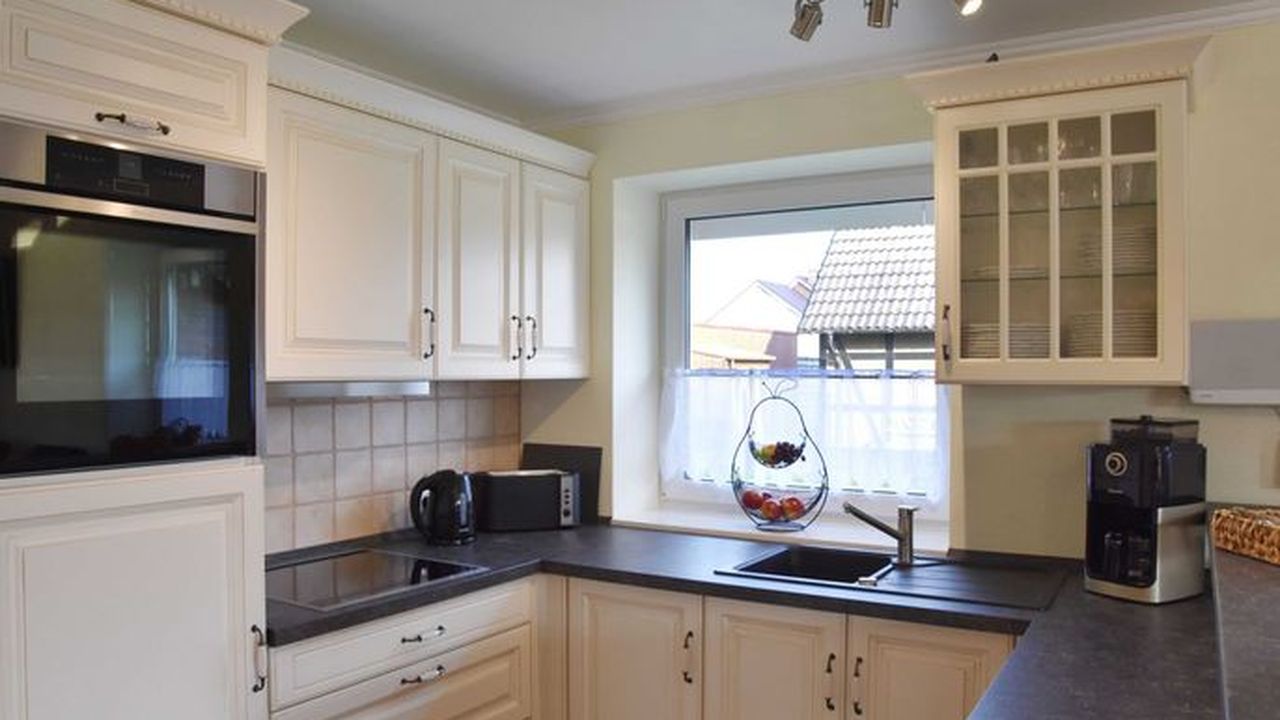 • Ausstattung Küche: Geschirrspüler extra leise, Ceranfeld, autark Dunstabzugshaube, Heißluftherd, Mikrowelle, Kühlschrank mit 3 Sterne Gefrierfach, Toaster, Wasserkocher, Kaffeemaschine mit Mahlwerk, Geschirr und Gläser für 12 Personen, Besteck, Töpfe usw. in ausreichender Anzahl, Stauraum für Lebensmittel und Getränke