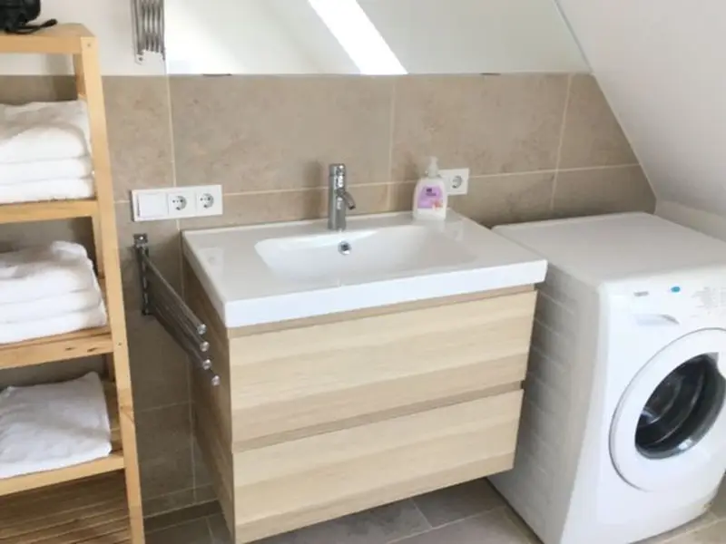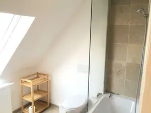 Das Apartment befindet sich im Dachgeschoß und umfasst 2 Schlafzimmer und ein Wohnzimmer für insgesamt 5 Personen. Es hat eine voll ausgestattete Küche mit einem Kühlschrank und einer Kaffeemaschine sowie 1 Bad mit einer Badewanne/ Dusche und einem Haartrockner.Handtücher und Bettwäsche werden im Apartment gestellt.