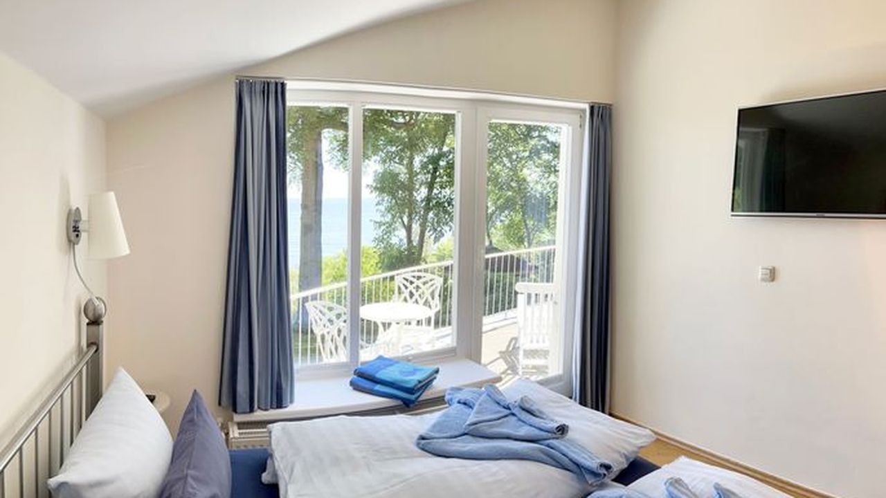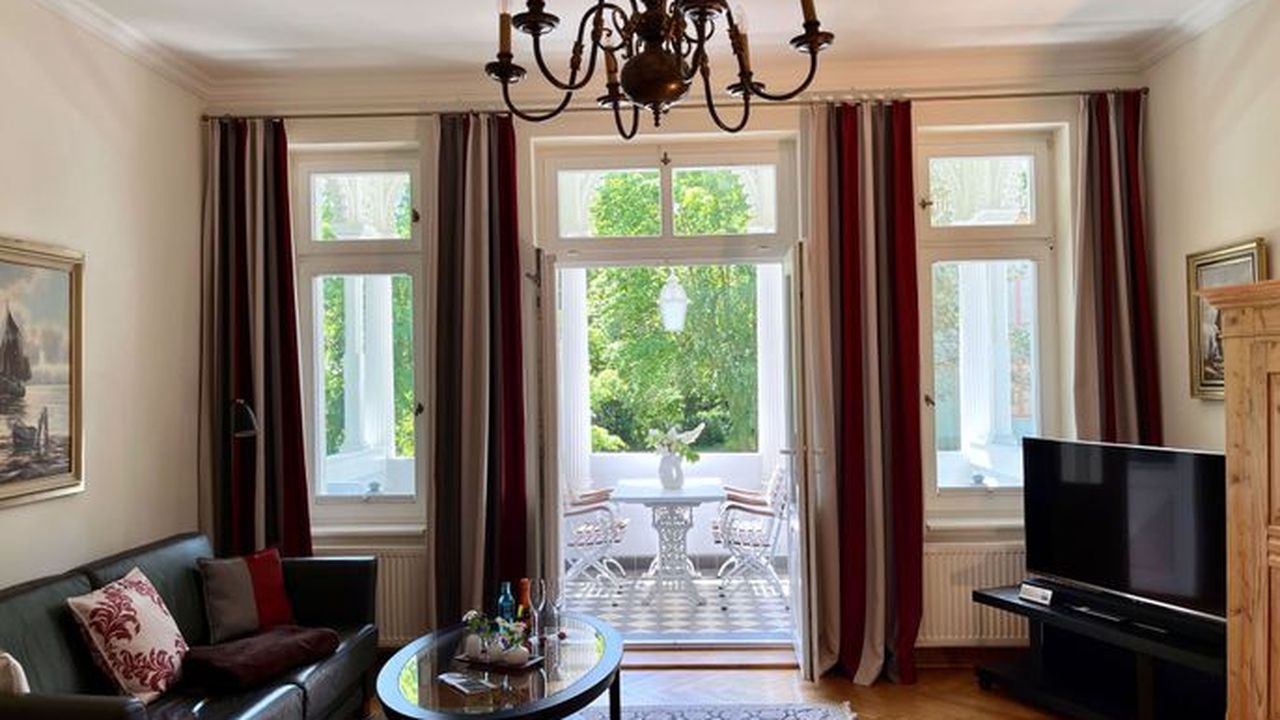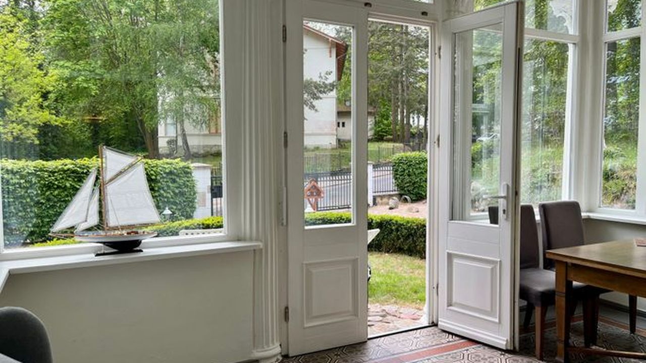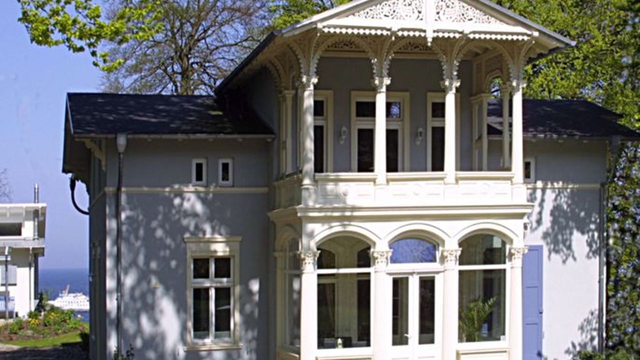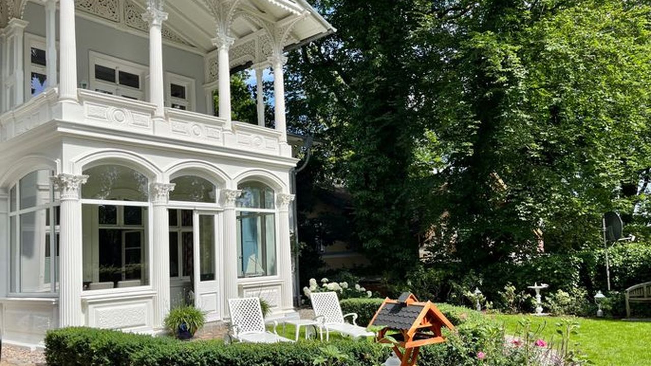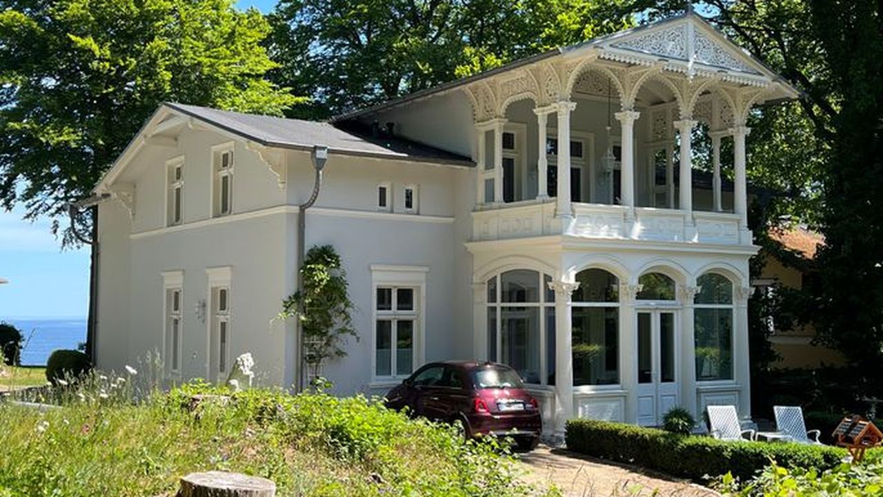 VILLA ACHTERKERKE - hier liegt Ihnen das Meer zu Füßen !Die bezaubernde 5-Sterne-Villa (erbaut im Jahre 1845) ist eine der ältesten erhaltenen Villen Heringsdorfs. Erhaben liegt sie - mit phantastischem Blick - auf der Anhöhe des Kulms, auf einem großzügigen, gepflegten Grundstück mit altem Baumbestand. Meerseitig wurde das Haus erweitert und öffnet sich zur Ostsee mit Meerblick aus allen Wohnungen. Viele Stammgäste kehren immer wieder an diesen erholsamen Ort zurück und schätzen das inhabergeführte Haus.