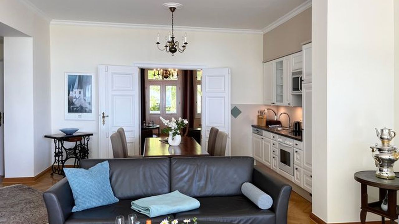 Bei Anmietung der kompletten Villa weisen wir darauf hin, dass unser Personal, auch während Ihres Aufenthaltes, die Wirtschafts- und Technikräume im Unterschoss betritt. Dies erfolgt über das allgemeine Treppenhaus - unter der gebotenen Rücksichtnahme. Die einzelnen Etagen sind selbstverständlich abgeschlossen.