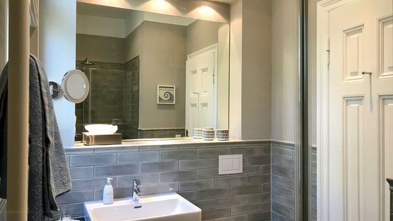 Es gibt in der oberen Etage 3 Bäder, davon ein Wannenbad.