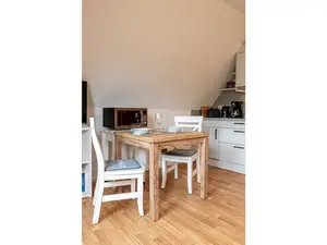 Diese Obergeschossferienwohnung liegt am Rande der "Löwenhöhle" von Wyk. Von hier aus hat man kurze Wege in die Innenstadt oder in die Dörfer. Die Wohnung verfügt über eine kleine, offene Küchenzeile. Eine kleiner Esstisch, eine Kaffeemaschine, Mikrowellenbackofen, Toaster und ausreichend Geschirr, Gläser, Teller, Becher etc. für bis zu 2 Personen gehören zur Ausstattung.