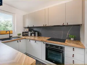 Die Unterkunft bietet viele Annehmlichkeiten: Die offene Küche ist mit Ceranfeld, Backofen, Spülmaschine, Mikrowelle, Toaster, Wasserkocher, Kühlschrank und separatem Tiefkühler bestens ausgestattet. Ein gemütlicher Wohnbereich mit Kabel-TV , Sofa und schneller WLAN-Verbindung sorgt für Unterhaltung und Entspannung. Die Wohnung ist für Workation-Gäste gut geeignet. Ein privater Parkplatz ist ebenfalls vorhanden. Familien und Hundebesitzer freuen sich über die Haustierfreundlichkeit (max. 2 Tiere erlaubt).