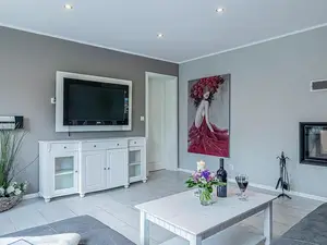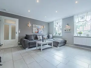 Eine besondere Wohnung im EG wo es einem garantiert an nichts fehlt. Die Wohnstube mit sehr großem FLAT TV mit ambilight und einer kuscheligen Sofaecke (lädt dazu ein, die Abende vor dem knisternden Kaminfeuer zu verbringen). Besonders ist bei dem Tunnelkamin, dass Sie auch aus der luxuriösen Küche das wärmende Lodern der Flammen genießen dürfen. Die sehr hochwertige Küche ist mit einer schönen Kochinsel mit großen Induktionsfeld, Mikrowelle, Geschirrspüler, Backofen mit Dampf....allen Kochutensilien, Küchengeräten und einer gemütlichen Sitzgruppe ausgestattet. In den 2 Schlafzimmern befinden sich jeweils FLAT TV Geräte und Boxspringbetten, so dass man auch hier den Abend bei einem guten Film ausklingen lassen kann. In einem Schlafzimmer ist ein 180x200 Meter großes Bett und in dem anderen befinden sich zwei Einzelbetten. Das Badezimmer mit sehr großer Dusche, WC, Waschtisch und Whirlpoolbadewanne (Whirl-, Air- und Farblichttherapie) ist von beiden Schlafzimmern direkt begehbar. Alle Räume lassen sich durch Aussen Jalousien komplett verdunkeln und in jedem Raum gibt es ein Fliegengitter um keine ungewollten Gäste beherbergen zu müssen. Weiterhin gibt es noch ein separates Gäste WC und die Nutzung von Waschmaschine und Trockner sind möglich. Eine wirklich exklusive Wohnung mit zusätzlicher Fußbodenheizung die liebevoll ausgestattet ist und wo es einem an nichts fehlen wird. Selbst die große Terrasse vor der Küche ist wundervoll und es kann durchaus passieren, dass hier mal ein Huhn GUTEN MORGEN wünscht oder eine unser Katzen nach dem rechten sieht. Hier beginnt man den Tag am besten mit einem leckeren Frühstück oder liest auf einer der 2 Gartenliegen ein spannendes Buch. Selbstverständlich ist ein PKW Stellplatz vor Ort vorhanden.Auf unserem Gutshof zum See wohnen noch einige Tiere (Katzen, Hunde, Ponys Pferde, Minischweine,...) und wer Lust hat der darf sich gerne in die Hofarbeit mit einbringen.