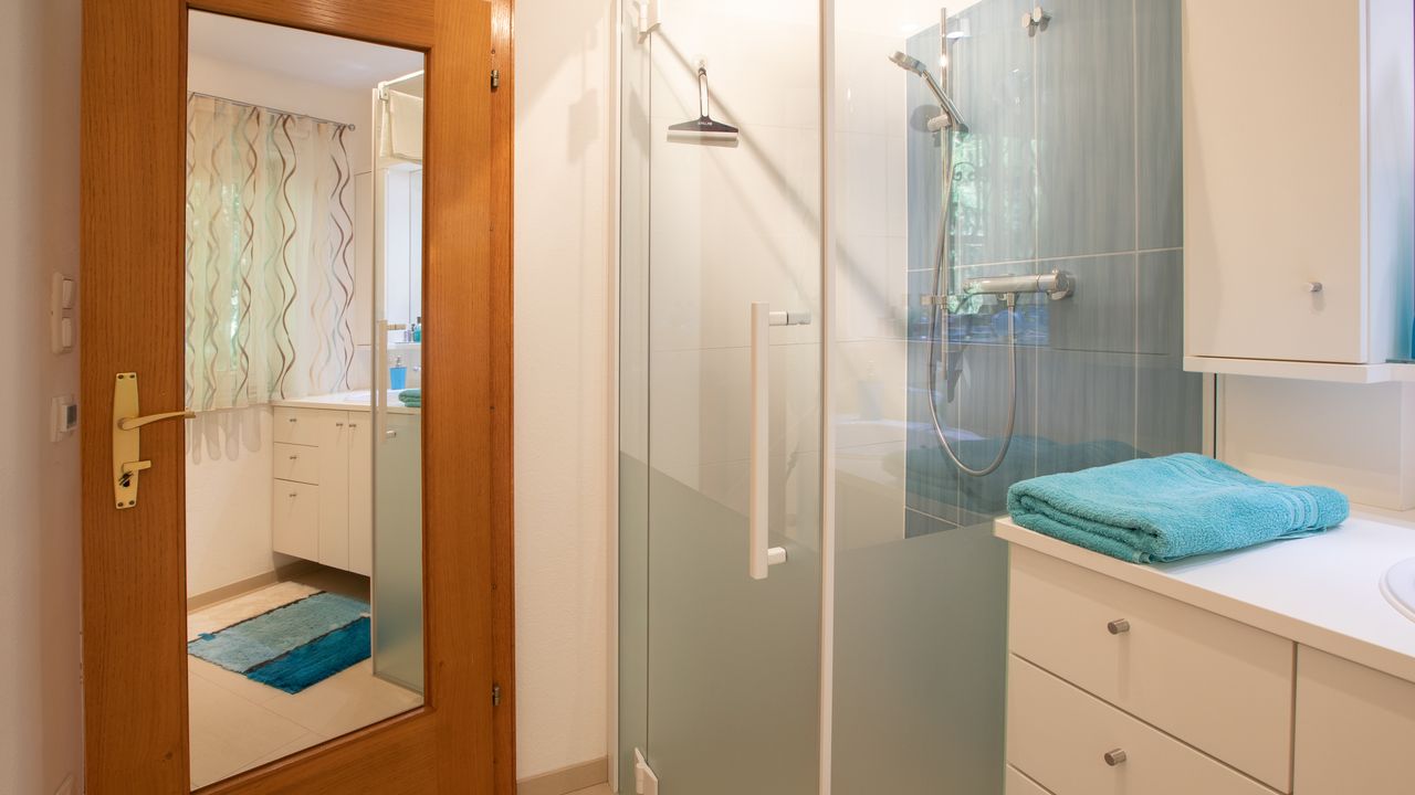 Das freundlich gestaltete Badezimmer mit "Walk-In-Dusche" bietet Ihnen Entspannung pur. Ebenfalls sind Handtücher und Seife für Sie bereitgestellt.