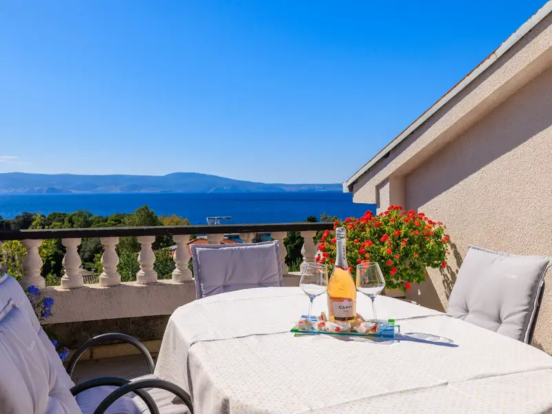 Die Ferienwohnung in Novi Vinodolski liegt im ersten Obergeschoss eines gepflegten Hauses und ist ideal f and uuml;r einen erholsamen Urlaub mit bis zu f and uuml;nf Personen. and nbsp;Zwei separate Schlafzimmer sorgen f and uuml;r Privatsph and auml;re und erholsame N and auml;chte, w and auml;hrend der klimatisierte Wohn- und Essbereich mit integrierter K and uuml;che zum gemeinsamen Verweilen einl and auml;dt. Von hier aus gelangen Sie direkt auf die Terrasse, die mit bequemen Sitzm and ouml;beln ausgestattet ist und dank einer Markise angenehmen Schatten spendet. Der Blick auf das Meer macht diesen Platz zu einem besonderen Highlight and ndash; perfekt f and uuml;r ein Fr and uuml;hst and uuml;ck in der Morgensonne oder ein Glas Wein bei Sonnenuntergang.
