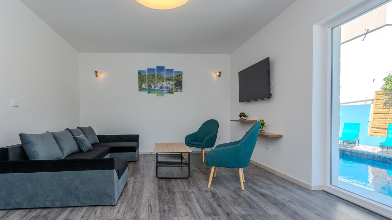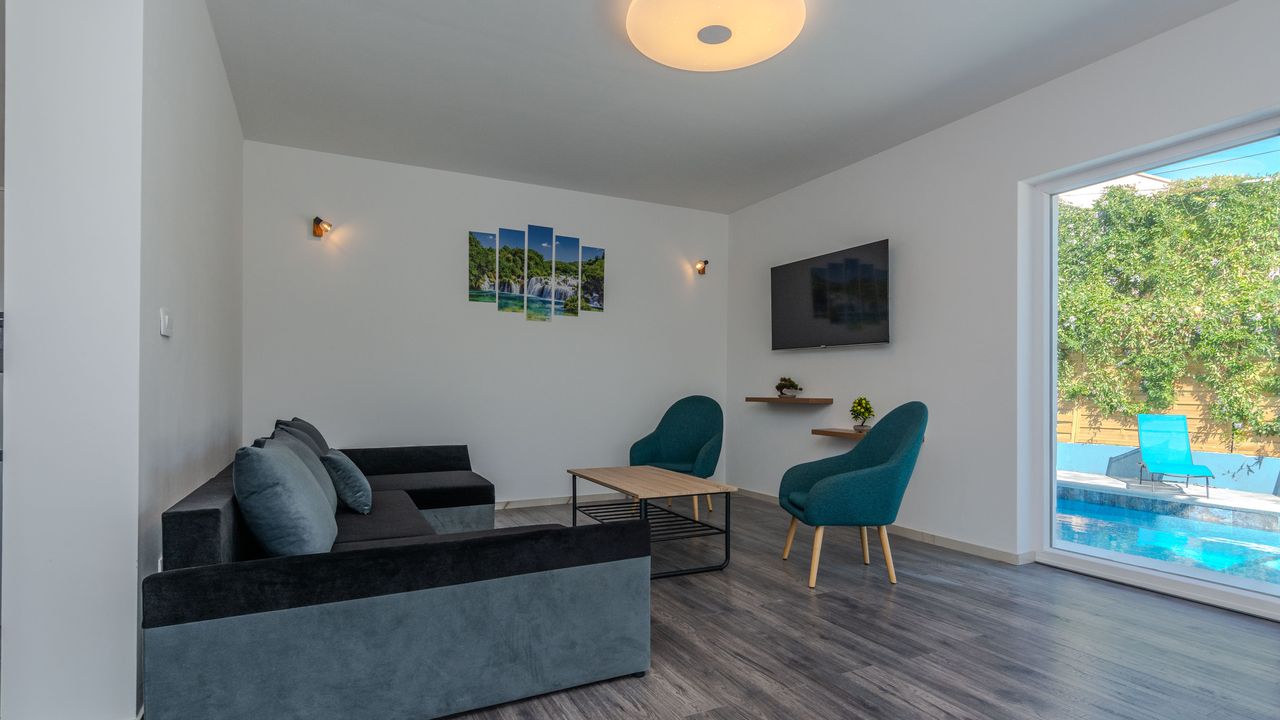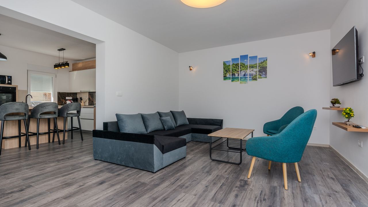 Der nächste Strand befindet sich in einer Entfernung von 1300 m. Die Entfernung zum Supermarket beträgt 600 m und das nächste Restaurant ist 800 m von der Wohnung entfernt. Die Entfernung zum Zentrum der Insel Vir beträgt 2000 m.