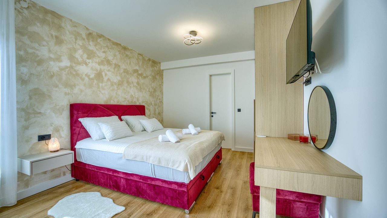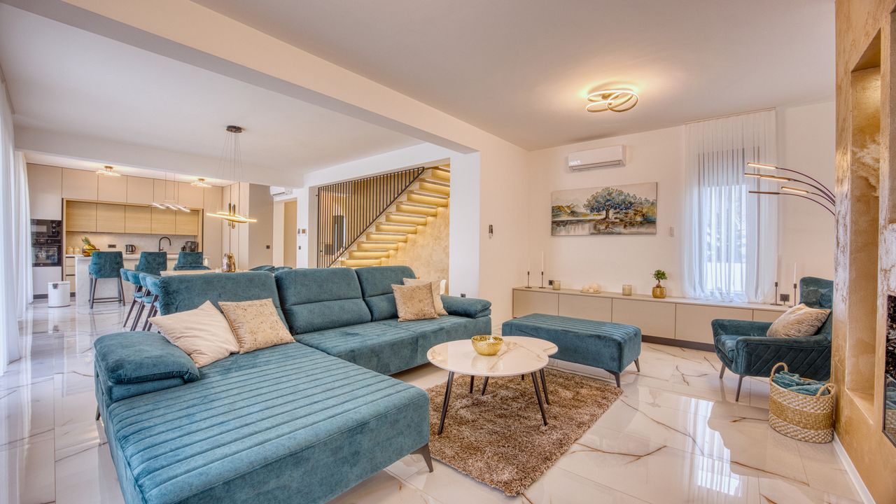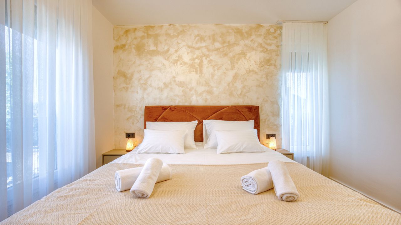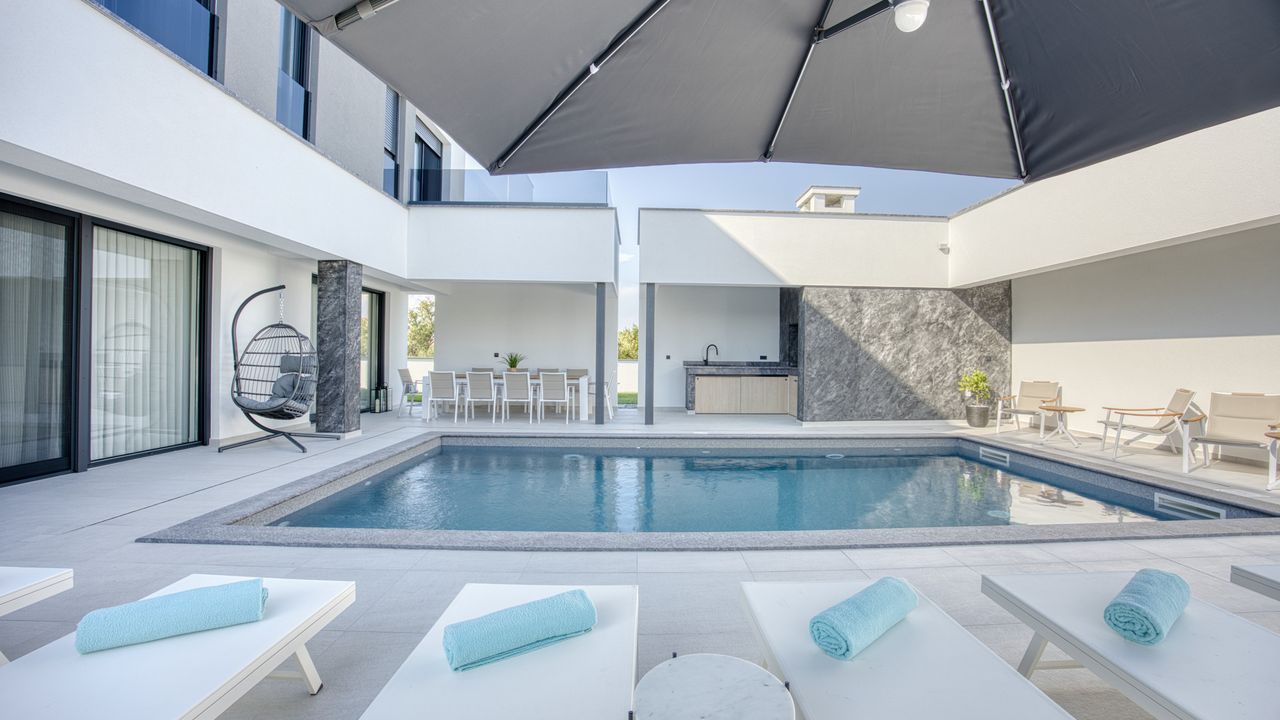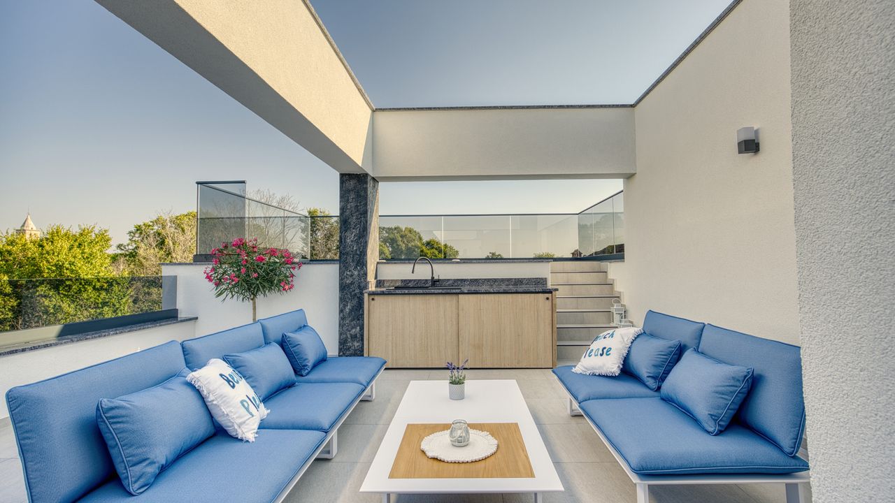 Diese luxuriöse und moderne Villa befindet sich auf einem 600 m² großen Anwesen mit Swimmingpool in einer ruhigen Ortsteil Zaton und ist ideal für 8-10 Personen.Im Erdgeschoss befindet sich ein stilvolles Wohnzimmer mit Poolblick, Esszimmer und voll ausgestattete Küche. Im ersten Stock der Villa befinden sich 4 Schlafzimmern mit Doppelbetten. Jedes Schlafzimmer ist mit Sat-TV, Safe, Klimaanlage und einem Badezimmer mit Dusche ausgestattet. Im Erdgeschoss befindet sich eine separate Toilette. Ebenfalls im zweiten Stock können die Gäste der Villa einen Mini-Wellnessbereich mit Sauna nutzen. Zur Villa gehören eine Dachterrasse mit Swimmingpool und Meerblick sowie ein Sonnendeck mit Liegestühlen, Sitzbereich und Außenküche.