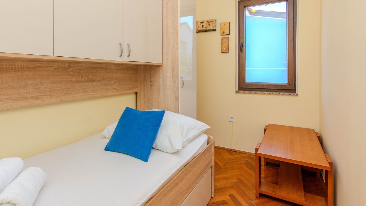 Dieses Ferienhaus befindet sich in einem ruhigen Teil der Gemeinde Privlaka und ist ideal für 4 Personen.Der 100 m² Wohnraum erstreckt sich über das Erdgeschoss und ist unterteilt in ein Wohnzimmer, voll ausgestattete Küche mit Essbereich, ein Schlafzimmer mit Doppelbett mit SAT-TV und zwei Schlafzimmer mit Einzelbette sowie ein Badezimmer mit Dusche. Das Ferienhaus verfügt über eine geschlossene Terrasse mit Grill, Liegen, Tisch und Stühlen von 15 m² ausgestattet ist.