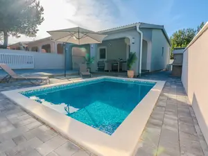 Dieses Ferienhaus mit privatem Pool befindet sich in einer ruhigen Lage der Insel Vir namens Rosulje und ist ideal für 4-5 Personen.Der 60 m² Wohnraum erstreckt sich über das Erdgeschoss und ist unterteilt in ein Wohnzimmer, voll ausgestattete Küche mit Essbereich, ein Schlafzimmer mit Doppelbett und eines mit zwei Einzelbetten sowie ein Badezimmer mit Dusche. Das Zimmer mit zwei Einzelbetten verfügt über einen Schreibtisch mit Fernsehmonitor und einer X-Box-Spielekonsole. Im Wohnzimmer befindet sich ein Schlafsofa für eine Person. Das Anwesen verfügt über eine überdachte Terrasse mit einer Fläche von 25 m², die mit einem Außensofa, einem Tisch und Stühlen ausgestattet ist. Zum Anwesen gehört außerdem ein 300 m² großer Innenhof mit privatem Pool, Grill, Sonnenschirm, Liegen und einer Außendusche.