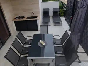 Ohne Aufpreis stehen den Gästen Klimaanlage, WIFI, SAT-TV, Backofen, Espressomaschine, Geschirrspüler, Waschmaschine und Parkplatz auf dem Grundstück zur Verfügung. Das Anwesen hat auch einen Garten mit Grill, Sonnenschirm, Liegestühlen und Außendusche. Den Gästen stehen ein Kinderbett und ein Hochstuhl zur Verfügung.
