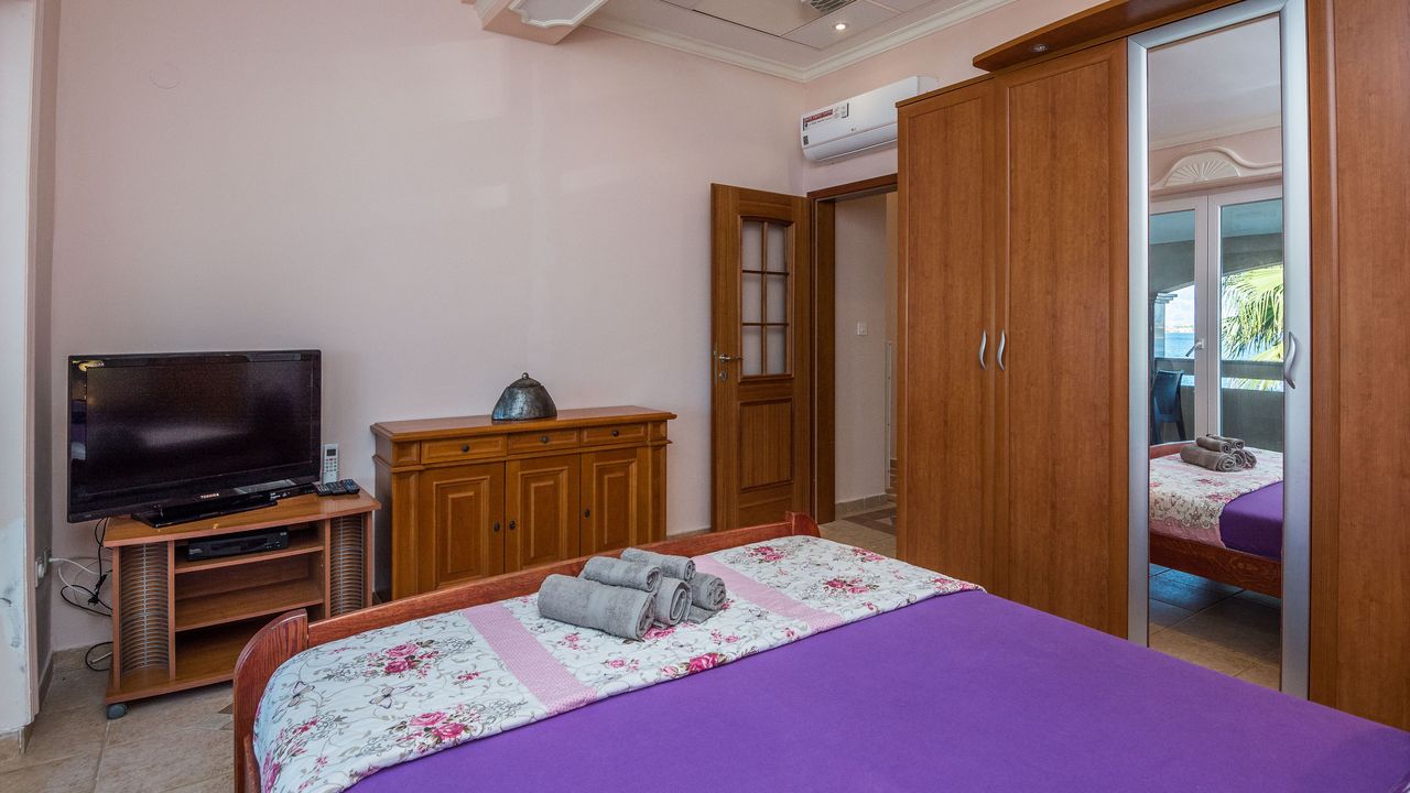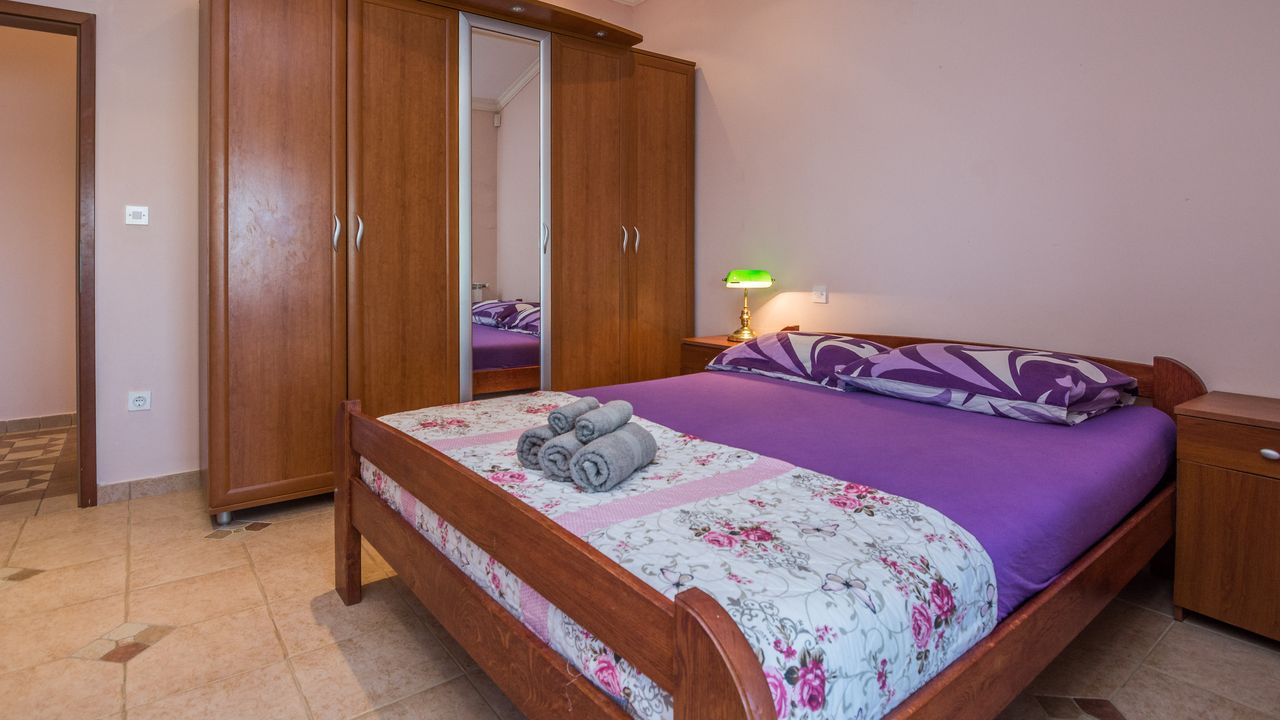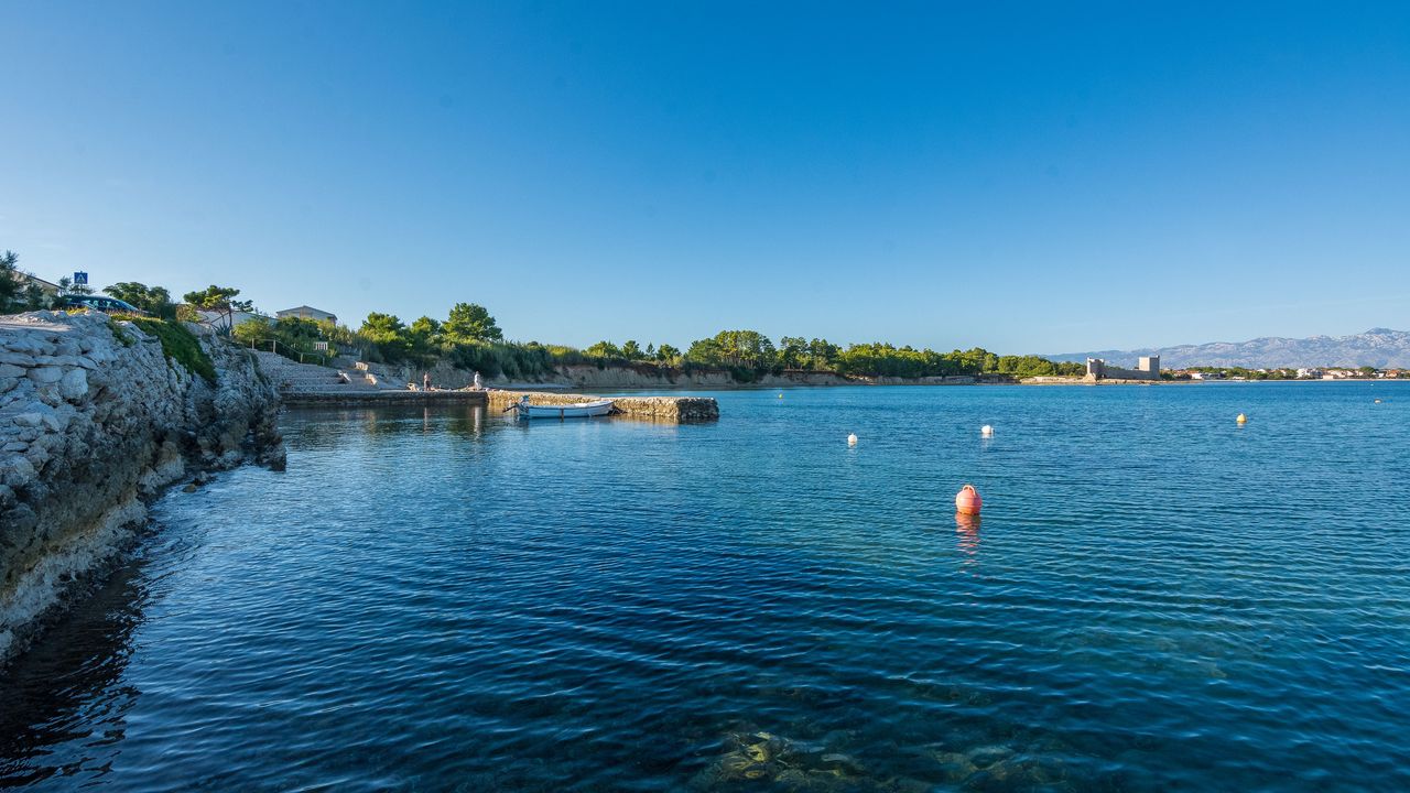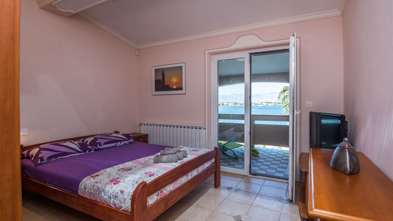 Dieses Apartment am Strand mit Meerblick befindet sich in einer ruhigen Gegend der Insel Vir namens Kozjak, am Strand Kozjak. Die Wohnung bietet Platz für 2-4 Personen.Die 50m² Wohnung im ersten Stock des Hauses teilt sich auf in ein klimatisiertes Wohnzimmer mit voll ausgestatteter Küche, ein klimatisiertes Schlafzimmer mit Doppelbett und ein Badezimmer mit Dusche. Im Wohnbereich befindet sich ein Schlafsofa für zwei weitere Personen. Vom Wohnzimmer gelangen Sie auf einen großzügigen möblierten 20m² Balkon mit Liegen und atemberaubendem Meerblick sowie Blick auf die Festung Kaštelina, Strand Jadro und die Insel Vir-Brücke, die Wahrzeichen der Insel Vir. Klimaanlage, Internet, Sat-TV und Garten mit Grillplatz stehen den Gästen ohne Aufpreis zur Verfügung. Parkplätze befinden sich in der Nähe des Hauses. Einkaufgeschäft und Restaurant sind zu Fuß erreichbar. Im Zentrum der Insel (ca. 3000 m entfernt) gibt es zahlreiche lokale Veranstaltungen mit allen Arten von Programmen und Aktivitäten sowohl für Erwachsene als auch für Kinder.