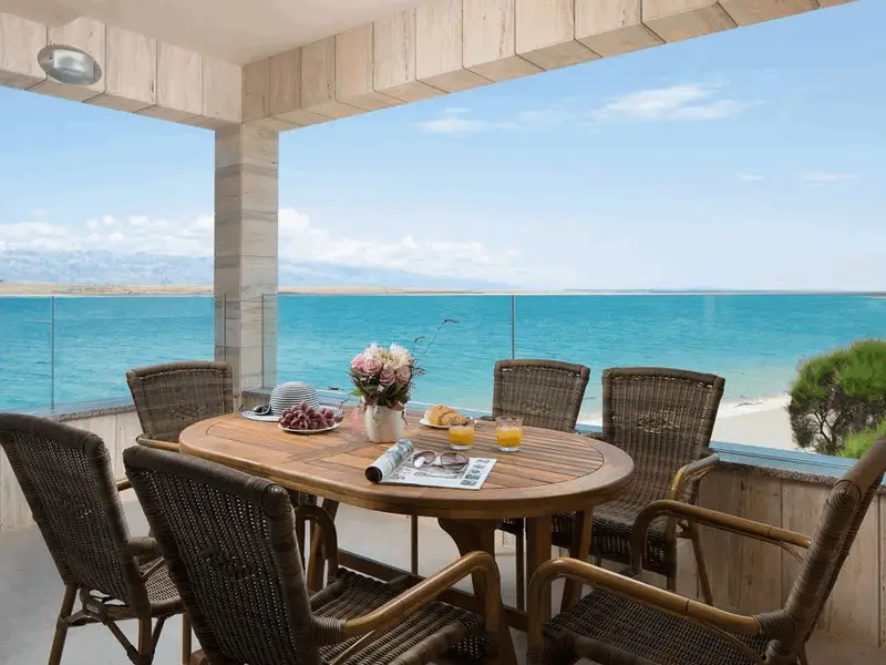 Dieses luxuriös, modern ausgestattete & neu angerichtete 4-Sterne Urlaubdomizil für 2-4 Personen befindet sich direkt am Strand in einer ruhigen Lage der Ortsteil Bobovik auf der Insel Vir.Die 50 m² große Wohnung im 1. Etage des Hauses teilt sich auf in ein Schlafzimmer, ein Badezimmer mit Dusche sowie einen Ess- & Wohnbereich mit komplett ausgestatteter Küche auf. Im Wohnraum befindet sich eine Schlafcouch für zwei Personen. Geschirrspülmaschine, Waschmaschine, Klima, Sat-TV und Internetzugang per WLAN zählen zu den weiteren Ausstattungsmerkmalen. Die zum Apartment gehörende Balkon mit einem atemberaubenden Meerblick die mit Tisch, Stühlen und Liegen ausgestattet ist lädt zum Entspannen ein und bietet Platz zum gemeinsamen Frühstücken und Essen. Im Außenbereich stehen Ihnen und allen Gästen ein überdachter Pavillon und Gartenmöbel auf Verfügung. Der nächste Badestrand ist ungefähr 10 m vom Anwesen entfernt. Dieser Kieselstrand Strand liegt auf eine 7 km lange Promenade entlang die Küste mit einem herrlichen Sonnenuntergang. Ideal für entspannendes abends Spaziergänge oder mehr anspruchsvolle schnelles Gehen oder Laufen.