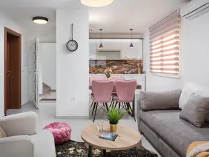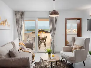 Diese luxuriöse, moderne und neu eingerichtete 4 Sterne Ferienwohnung befindet sich in einer Gegend der Insel Vir namens Lučica, nur 30 m vom Strand entfernt und bietet Platz für 2-4 Personen.Die 63 m² Ferienunterkunft im dritten Stock des Hauses teilt sich auf ein Wohn- /Essbereich mit voll ausgestatteter Küche, zwei Schlafzimmern mit Doppelbett und ein Badezimmer mit Duschkabine. Zur Wohnung gehört eine 9 m² überdachte Balkon mit Tisch und Stühlen und mit Meerblick. Zu den weiteren Annehmlichkeiten gehören Waschmaschine, Geschirrspüler, Klimaanlage, Internet per WLAN, Sat-TV, Safe und Parkplatz auf dem Grundstück. Ein gemeinsamer Balkon und Lounge Bereich auf dem Dach des Hauses (3. Stock) mit Grill Pavillon, Sitzgarnitur, Liegestühlen und einem atemberaubenden Meerblick ist ein idealer Ort, um dem Alltag in den abendlichen Sonnenuntergang Atmosphäre zu entkommen. Am nahegelegenen Kiesstrand Lučica mit kristallklarem Meer können Sie Sonnenbaden, Schwimmen und Tauchen. Entlang der Küste erstreckt sich eine 7 km lange Promenade. Für diejenigen, die einen mehr aktiven Ferienurlaub bevorzugen, ist diese Promenade ideal für schnelles Gehen oder Laufen. Shops und Restaurants sind nur wenige Gehminuten entfernt.