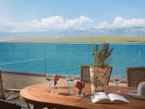 Dieses luxuriös, modern ausgestattete & neu angerichtete 4-Sterne Urlaubdomizil für 2-4 Personen befindet sich direkt am Strand in einer ruhigen Lage der Ortsteil Bobovik auf der Insel Vir.Die 50 m² große Wohnung im 1. Etage des Hauses teilt sich auf in ein Schlafzimmer, ein Badezimmer mit Dusche sowie einen Ess- & Wohnbereich mit komplett ausgestatteter Küche auf. Im Wohnraum befindet sich eine Schlafcouch für zwei Personen. Geschirrspülmaschine, Waschmaschine, Klima, Sat-TV und Internetzugang per WLAN zählen zu den weiteren Ausstattungsmerkmalen. Die zum Apartment gehörende Balkon mit einem atemberaubenden Meerblick die mit Tisch, Stühlen und Liegen ausgestattet ist lädt zum Entspannen ein und bietet Platz zum gemeinsamen Frühstücken und Essen. Im Außenbereich stehen Ihnen und allen Gästen ein überdachter Pavillon mit Gartenmöbeln auf Verfügung. Der nächste Badestrand ist ungefähr 10 m vom Anwesen entfernt. Dieser Kieselstrand Strand liegt auf eine 7 km lange Promenade entlang die Küste mit einem herrlichen Sonnenuntergang. Ideal für entspannendes abends Spaziergänge oder mehr anspruchsvolle schnelles Gehen oder Laufen.