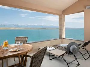 Dieses luxuriös, modern ausgestattete & neu angerichtete 4-Sterne Urlaubdomizil für 2-4 Personen befindet sich direkt am Strand in einer ruhigen Lage der Ortsteil Bobovik auf der Insel Vir.Die 50 m² große Wohnung im 2. Etage des Hauses teilt sich auf in ein Schlafzimmer, ein Badezimmer mit Dusche sowie einen Ess- & Wohnbereich mit komplett ausgestatteter Küche auf. Im Wohnraum befindet sich eine Schlafcouch für zwei Personen. Geschirrspülmaschine, Waschmaschine, Klima, Sat-Tv und Internetzugang per WLAN zählen zu den weiteren Ausstattungsmerkmalen. Die zum Apartment gehörende Balkon mit einem atemberaubenden Meerblick die mit Tisch, Stühlen und Liegen ausgestattet ist lädt zum Entspannen ein und bietet Platz zum gemeinsamen Frühstücken und Essen. Im Außenbereich stehen Ihnen und allen Gästen ein überdachter Pavillon mit Gartenmöbeln auf Verfügung. Der nächste Badestrand ist ungefähr 10 m vom Anwesen entfernt. Dieser Kieselstrand Strand liegt auf eine 7 km lange Promenade entlang die Küste mit einem herrlichen Sonnenuntergang. Ideal für entspannendes abends Spaziergänge oder mehr anspruchsvolle schnelles Gehen oder Laufen.