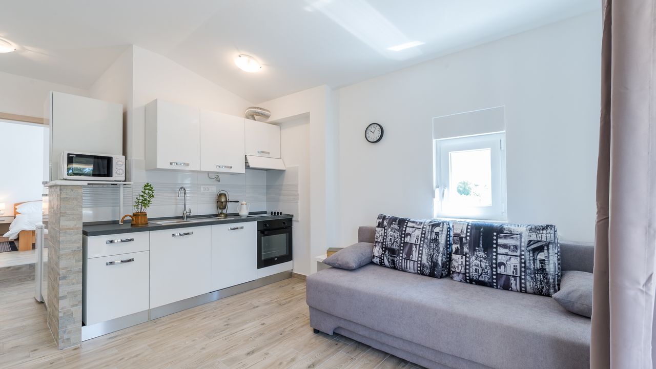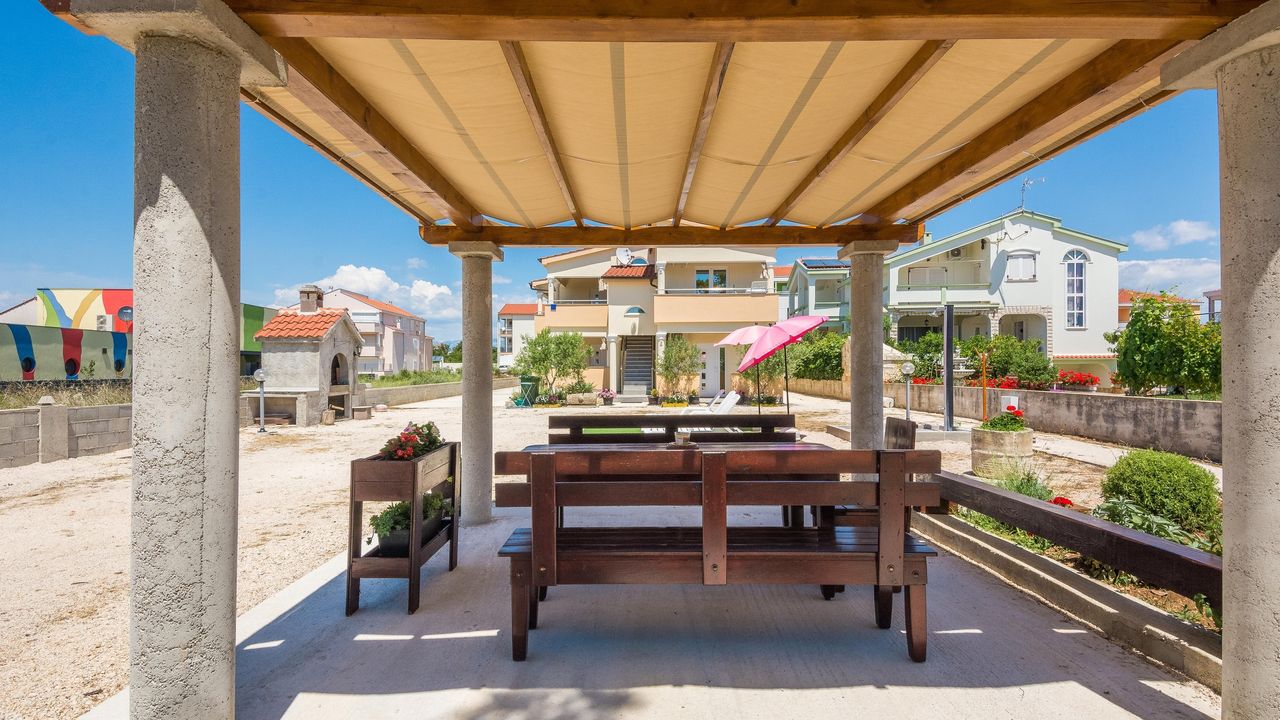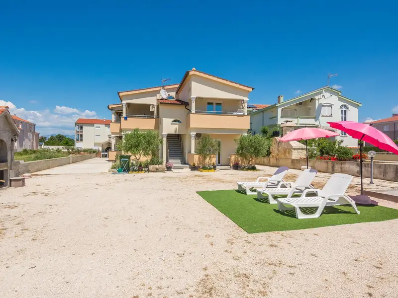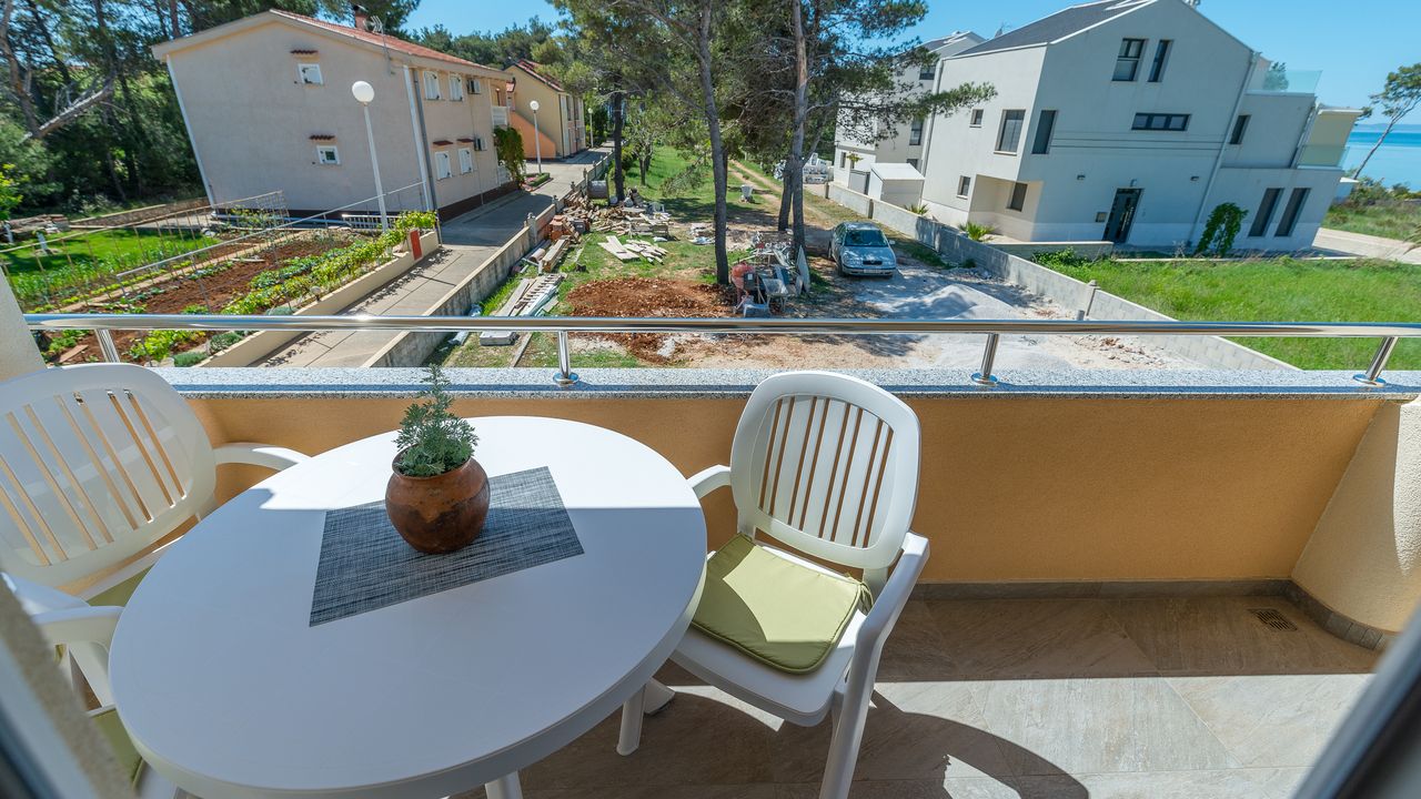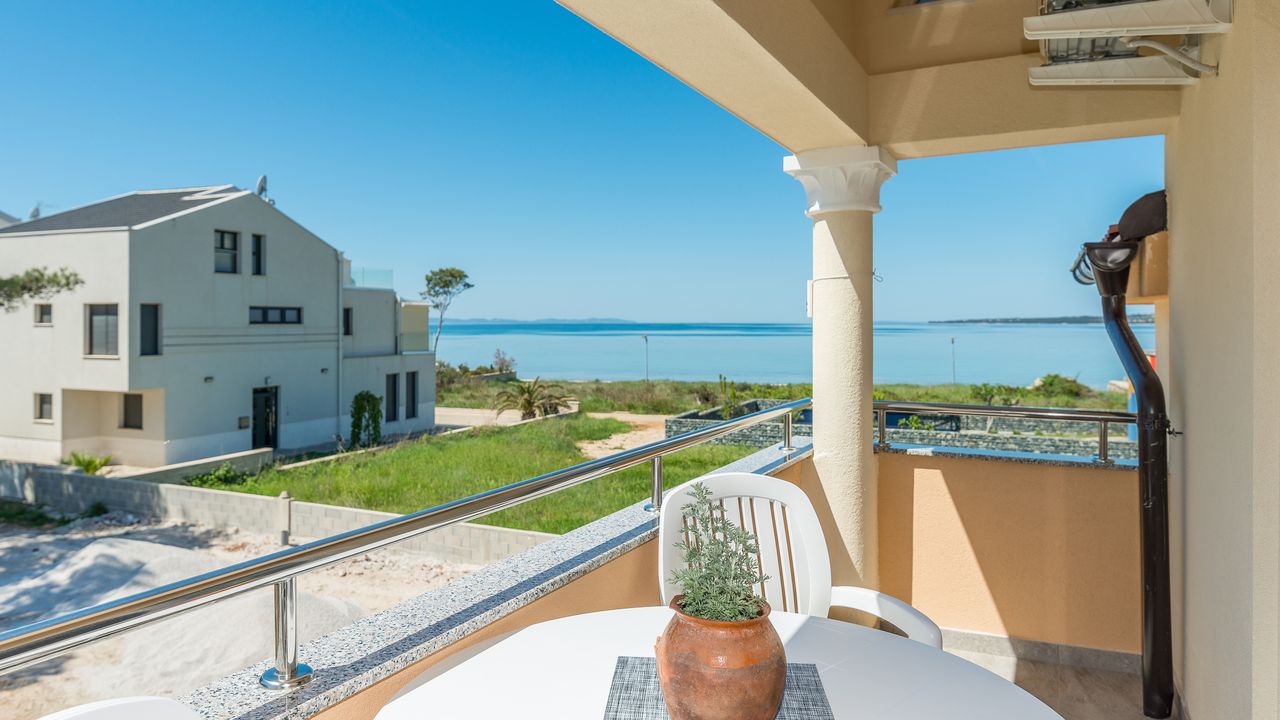 Modern eingerichtete Wohnung (45 m²) mit 4 * und ein Meerblick befindet sich in einer ruhigen Gegend in Privlaka, nur 8 km von der Inseln VirDie Nähe des Meeres und der umliegenden mediterranen Grün machen diese Wohnung zu einem idealen Ort, um sich zu entspannen und dem Alltag zu entfliehen .Diese luxuriöse FeWo für 2 Personen befindet sich im Erdgeschoss und ist in ein Wohnzimmer mit Küche und Esszimmer, ein Doppelzimmer mit Doppelbett und ein Badezimmer mit Dusche aufgeteilt. Die Wohnung hat überdachte und möblierte Balkon mit Meerblick. Zu den weiteren Annehmlichkeiten gehören Klimaanlage, Sat-TV und Internet per WLAN. Im geräumigen Innenhof (1500 m²) gibt es Parkplatz, Grill, Sonnendeck mit Liegen und Außendusche .Entfernung zum Strand mit betonierte Liegeflächen und Pinienwald ist nur 30 m.