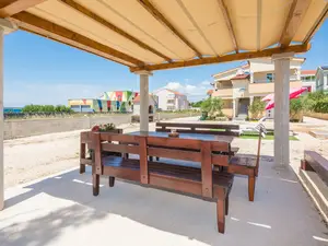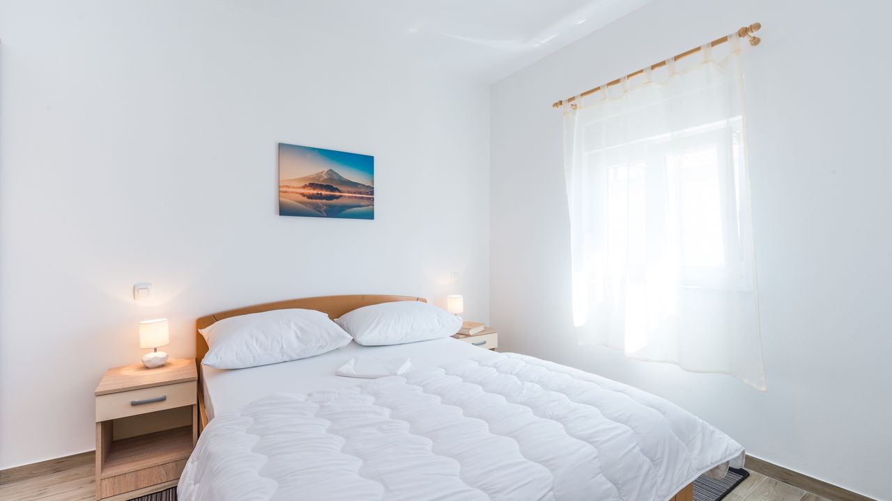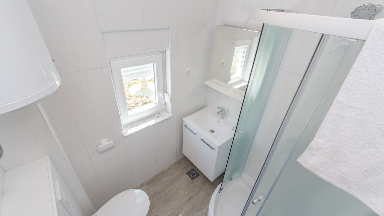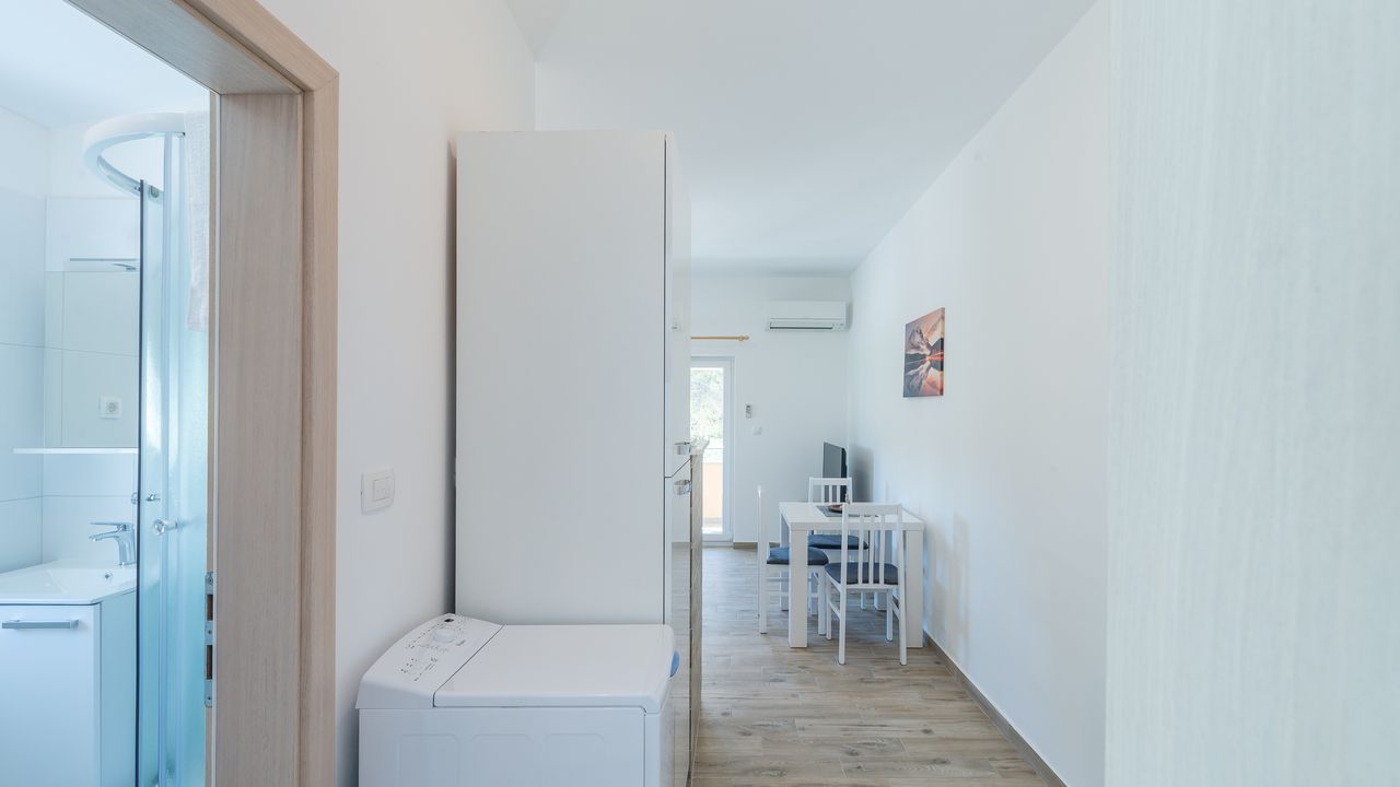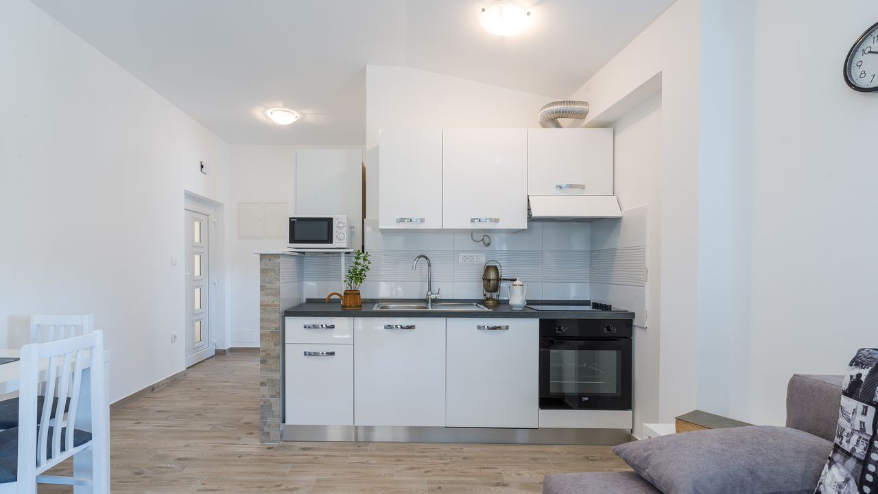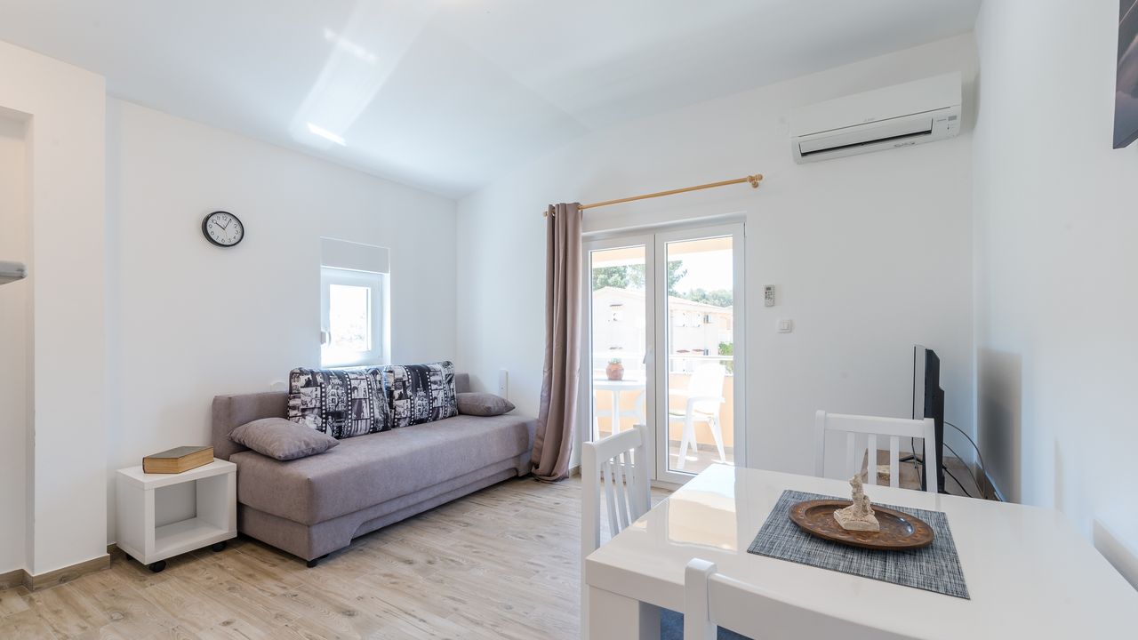 Modern eingerichtete Wohnung (45 m²) mit 4 * und ein Meerblick befindet sich in einer ruhigen Gegend in Privlaka, nur 8 km von der Inseln VirDie Nähe des Meeres und der umliegenden mediterranen Grün machen diese Wohnung zu einem idealen Ort, um sich zu entspannen und dem Alltag zu entfliehen .Diese luxuriöse FeWo für 2 Personen befindet sich im Erdgeschoss und ist in ein Wohnzimmer mit Küche und Esszimmer, ein Doppelzimmer mit Doppelbett und ein Badezimmer mit Dusche aufgeteilt. Die Wohnung hat überdachte und möblierte Balkon mit Meerblick. Zu den weiteren Annehmlichkeiten gehören Klimaanlage, Sat-TV und Internet per WLAN. Im geräumigen Innenhof (1500 m²) gibt es Parkplatz, Grill, Sonnendeck mit Liegen und Außendusche .Entfernung zum Strand mit betonierte Liegeflächen und Pinienwald ist nur 30 m.