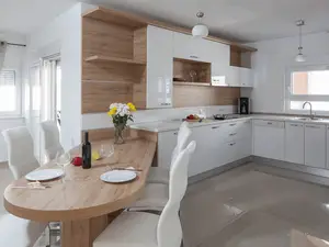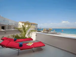 Nur 20 m vom nächsten Badestrand entfernt befindet sich diese schöne und modern eingereichte FeWo für 4-6 Personen im Ortsteil Bobovik auf der Insel Vir.Zum Apartment gehört auch eine 300 m² großer Innenhof, der Ihnen und allen Gästen des Hauses zur Verfügung steht. Im Hof gibt es auch einen Pavillon mit Esstisch, Sitzgelegenheit und Grilmöglichkeit. Die 100 m² große Wohnung in dem Erdgeschoß des Hauses teilt sich auf zwei Schlafzimmern, ein Badezimmer mit Dusche sowie einen Ess- & Wohnbereich mit Küche auf. Im Wohnraum befinden sich eine Schlafcouch für zwei Personen. Eine gut ausgestattete Küche, Klima, Sat-TV und Internetzugang per WLAN zählen zu den weiteren Ausstattungsmerkmalen. Die zum Apartment gehörende Terrasse mit Meerblick, die mit Tisch, Stühlen und Liegen ausgestattet ist lädt zum Entspannen ein und bietet Platz zum gemeinsamen Frühstücken und Essen. Einkaufsmöglichkeiten und Restaurants erreichen Sie innerhalb weniger Gehminuten. Ungefähr 20 m vom Haus entfernt erwarten Sie schon erwähnt schönes Kiesel Strand die ladet zum Sonnenbaden ein. Dieser Strand liegt auf eine 7 km lange Promenade entlang Küste mit einem herrlichen Sonnenuntergang. Ideal für entspannendes abends Spaziergänge oder mehr anspruchsvolle schnelles Gehen oder Laufen.