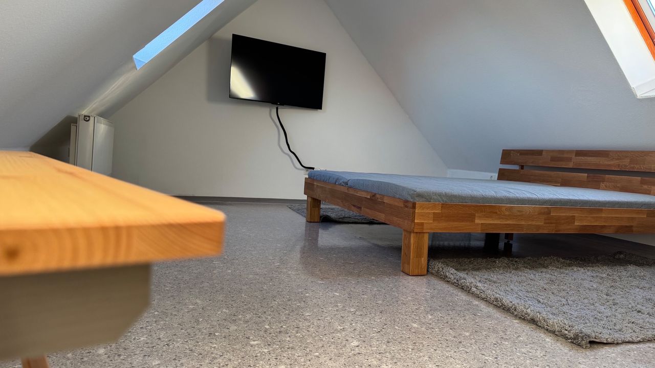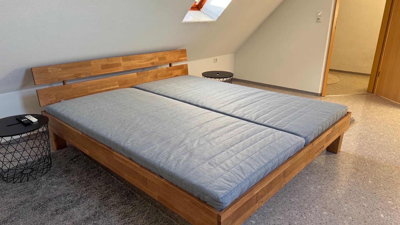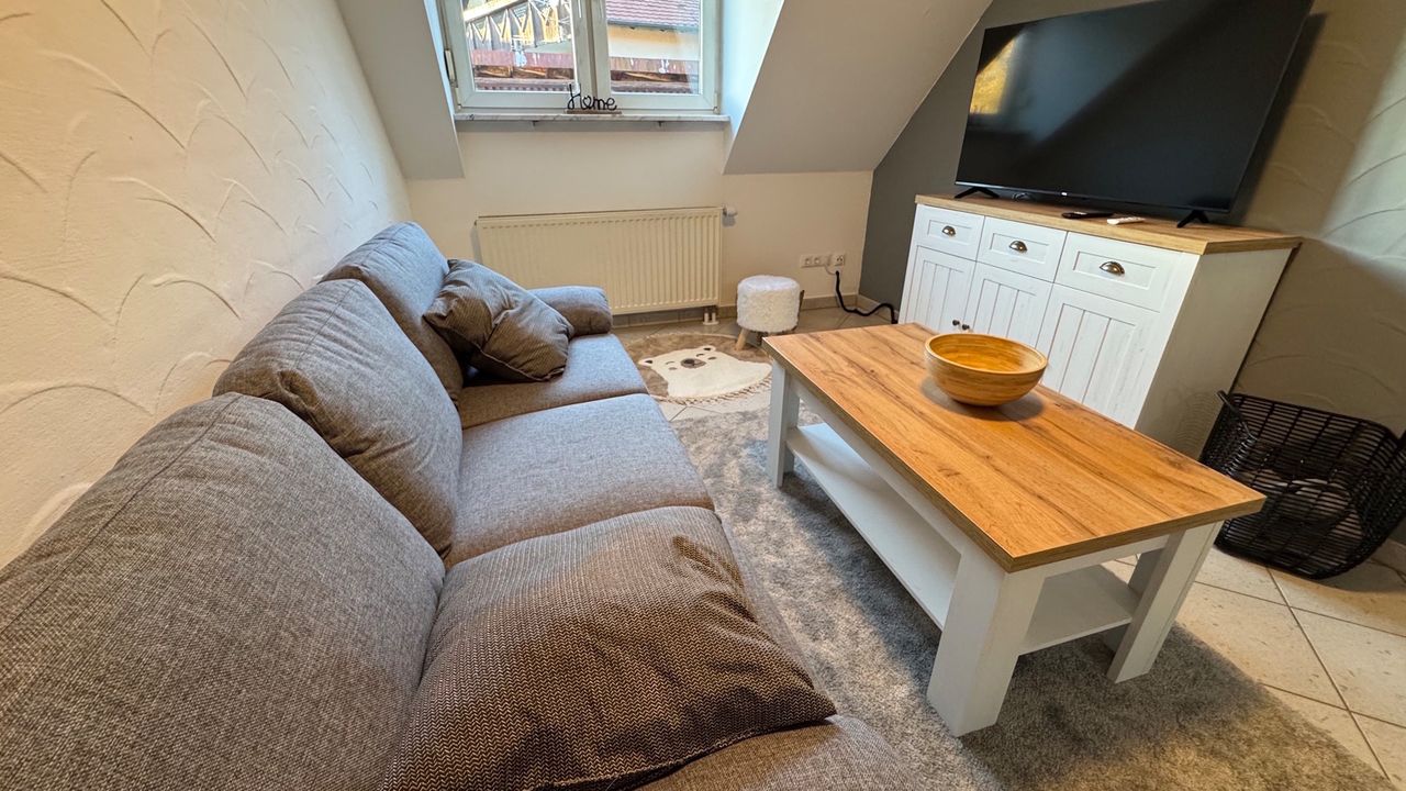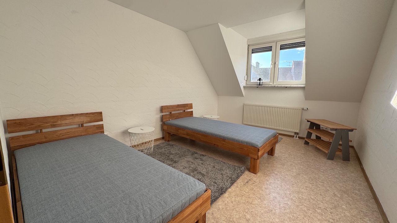 Sie ist ideal geeignet für Paare, Familien oder Geschäftsreisende, die Wert auf eine komfortable und praktische Unterkunft legen. Die Wohnung verfügt über eine voll ausgestattete Küche mit modernen Geräten, ausreichend Kochgelegenheiten, Spülmaschine und Geschirr, damit Sie auch mal bequem selbst kochen können. Das modern gestaltete Bad bietet eine Kombination aus Badewanne und Dusche, WC, Handtücher werden hier von uns zur Verfügung gestellt. Zwei gemütliche Schlafzimmer sorgen für ruhige Nächte. Das Schlafzimmer in der Wohnebene ist ausgestattet mit zwei Einzelbetten. Das zweite Schlafzimmer im Obergeschoss enthält ein großes Doppelbett, sowie ein Babybett, welches bei Bedarf kostenfrei genutzt werden kann.