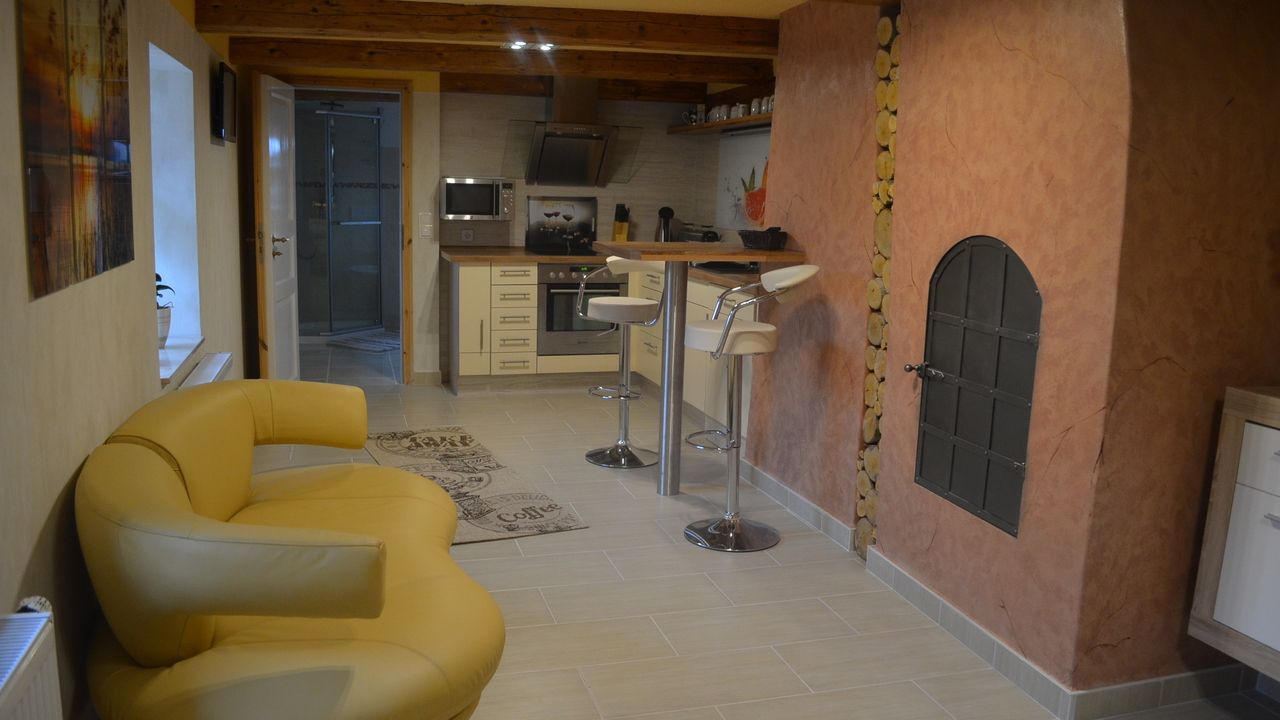 Wir haben das Haus 2005 erworben und mit viel liebe umgebaut. Das Haus ist 1606 erbaut und war immer in der Hand der evangelischen Kirche. Es war bis in den 90ziger Jahren der Wohnsitz des jeweiligen Pfarrers.