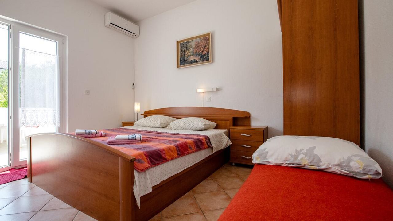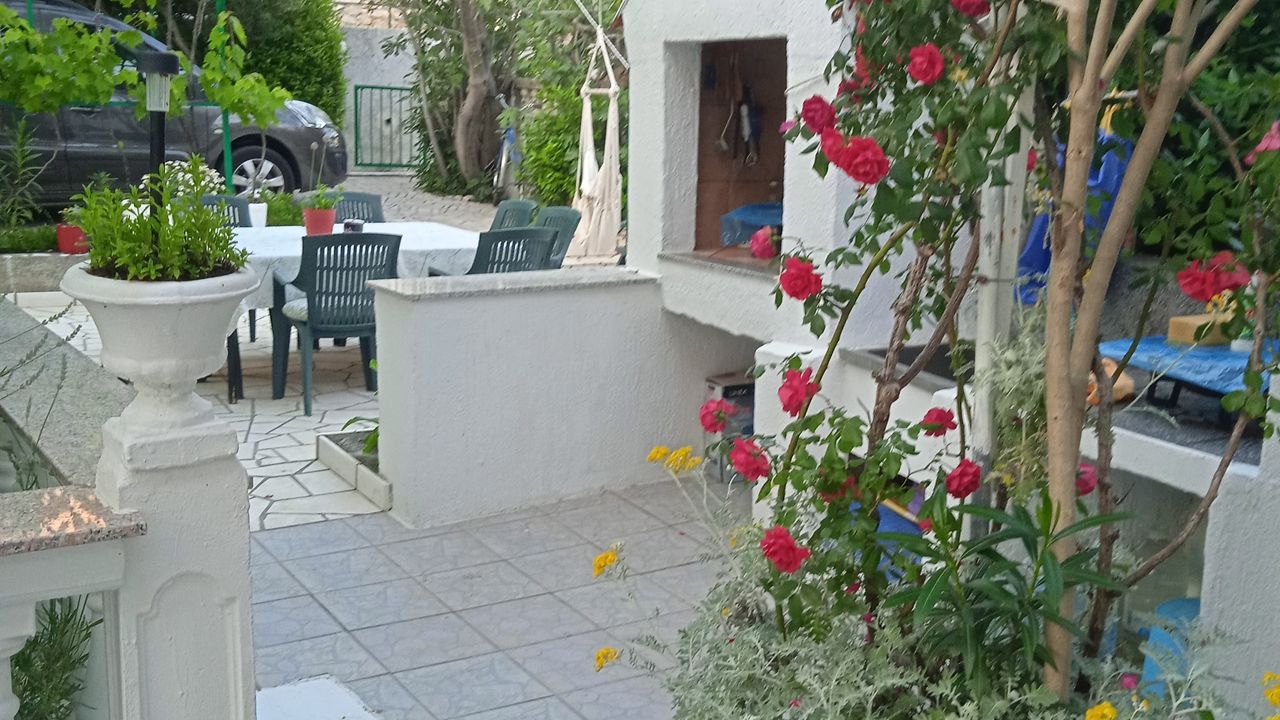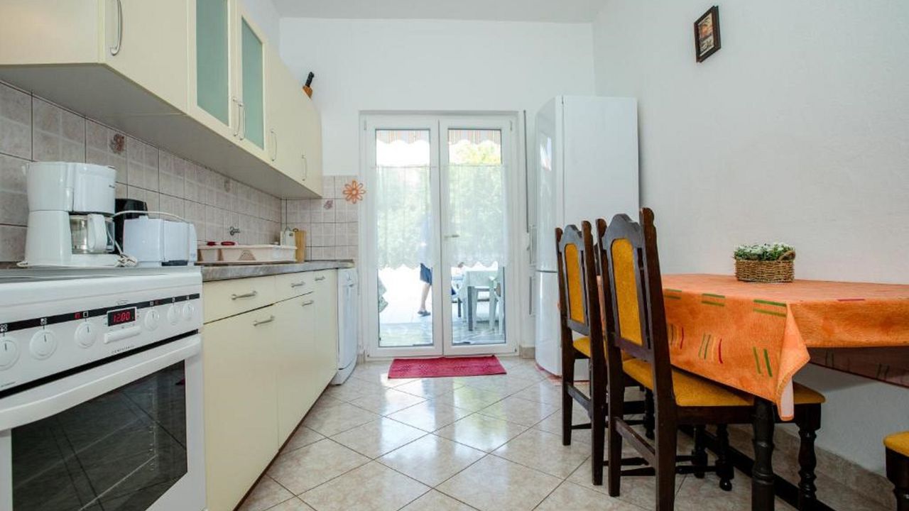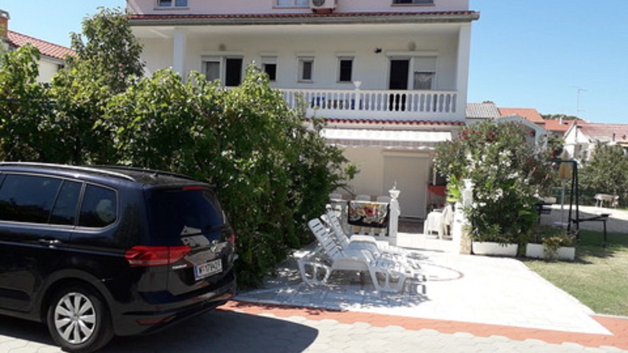 -in einer ausgezeichneten Lage, in der Nähe der attraktiven Stadt Rab, aber gleichzeitig ruhig und zugänglich, in der Nähe des Meeres, des Yachthafens Rab, des Naturparks Komrčar, des Sportzentrums, der Geschäfte, des Fischmarkts, Banken, Post, touristische Dienstleistungen: Restaurants, Cafés, Bars, Pizzeria, alle ca. 200m entfernt. Es befindet sich im Erdgeschoss einer schönen Villa mit ausreichend Platz zum Parken von Autos und Anhängern für Boote, Terrassen und Garten, mit mediterranen Pflanzen und Obstbäumen, ausgestattet mit Tischen, Stühlen, Grill, Schaukeln für Kinder, Dusche Gartenmöbel, Liegestühle, Sonnenschirme. Die Wohnung bietet Platz für bis zu acht Personen, hat eine Fläche von 110 Quadratmetern, unabhängigen Eingang, überdachte Veranda, Flur, 3 Schlafzimmer mit jeweils eigenem Bad, gut ausgestattete Küche, ausgestattet mit einem Herd mit vier Brennern, Elektroherd , Doppelwaschbecken, Waschmaschine, Geschirrspüler, Kühlschrank mit Gefrierfach, Set Töpfe und Besteck, Gläser, Kaffeemaschine, Mikrowelle, Wasserkocher, Wasserkocher, Toaster. Sat TV, WiFi, Klimaanlage.