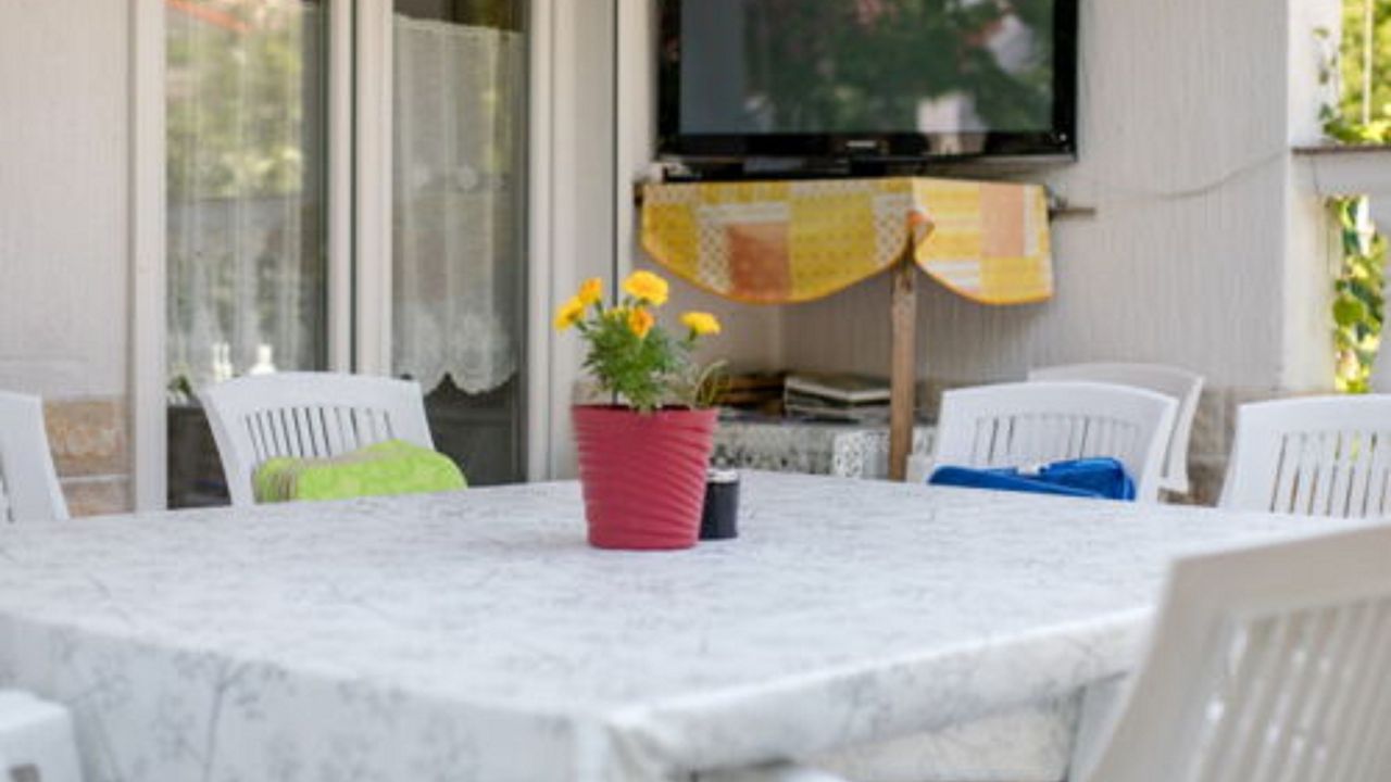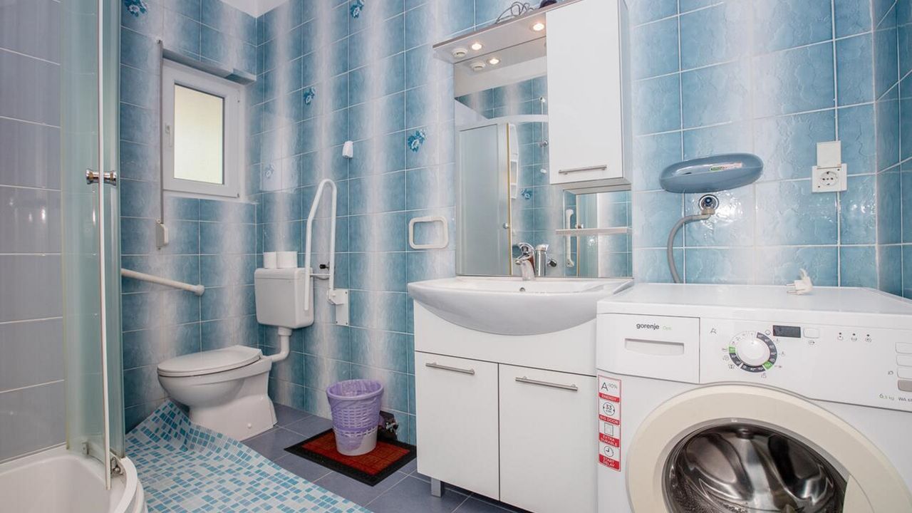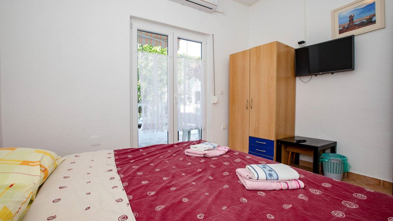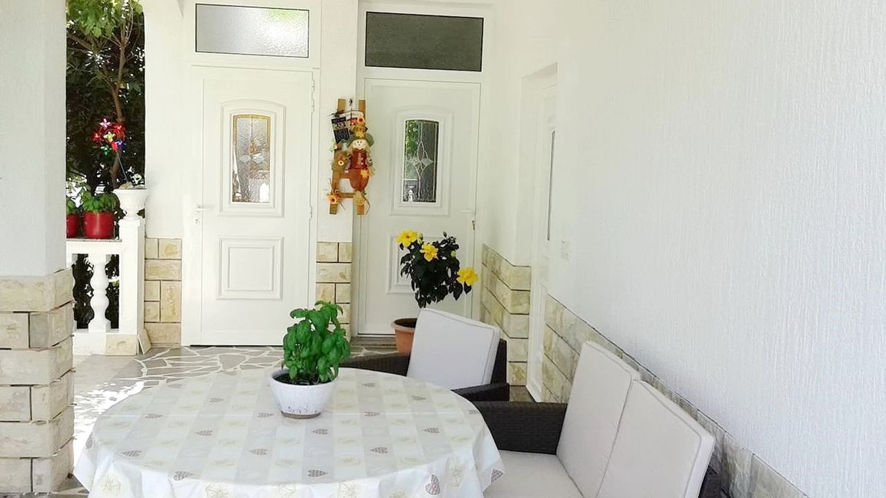 -in einer ausgezeichneten Lage, in der Nähe der attraktiven Stadt Rab, aber gleichzeitig ruhig und zugänglich, in der Nähe des Meeres, des Yachthafens Rab, des Naturparks Komrčar, des Sportzentrums, der Geschäfte, des Fischmarkts, Banken, Post, touristische Dienstleistungen: Restaurants, Cafés, Bars, Pizzeria, alle ca. 200m entfernt. Es befindet sich im Erdgeschoss einer schönen Villa mit ausreichend Platz zum Parken von Autos und Anhängern für Boote, Terrassen und Garten, mit mediterranen Pflanzen und Obstbäumen, ausgestattet mit Tischen, Stühlen, Grill, Schaukeln für Kinder, Dusche Gartenmöbel, Liegestühle, Sonnenschirme. Die Wohnung bietet Platz für bis zu acht Personen, hat eine Fläche von 110 Quadratmetern, unabhängigen Eingang, überdachte Veranda, Flur, 3 Schlafzimmer mit jeweils eigenem Bad, gut ausgestattete Küche, ausgestattet mit einem Herd mit vier Brennern, Elektroherd , Doppelwaschbecken, Waschmaschine, Geschirrspüler, Kühlschrank mit Gefrierfach, Set Töpfe und Besteck, Gläser, Kaffeemaschine, Mikrowelle, Wasserkocher, Wasserkocher, Toaster. Sat TV, WiFi, Klimaanlage.