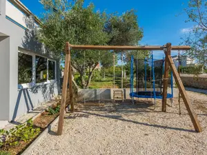 Dieses moderne Apartment befindet sich in ruhiger Lage im Zentrum der Insel Vir. Das Urlaubdomizil bietet Platz für 4-6 Personen, ideal für einen Familienurlaub.Die 72 m² große Unterkunft im 1. Obergeschoss des Hauses teilt sich in zwei Schlafzimmer, zwei Badezimmer, sowie einen Ess- & Wohnbereich mit Küche auf. Im Wohnraum befindet sich eine Schlafcouch für zwei Personen. Der 30 m² große, möblierte Balkon, die Klimaanlage, der Sat-TV, das Internet, das Parkplatz auf dem Grundstück vor Ort, Grill im Innenhof, ein kleiner Kinderspielplatz hinter dem Haus mit Trampolin und Schaukeln zählen zu den weiteren Ausstattungsmerkmalen. Restaurants, Einkaufsmöglichkeiten und das Zentrum des Ortes Vir erreichen Sie innerhalb weniger Gehminuten. Der Kieselstrand und das Meer sind nur etwa 400 Meter vom Objekt entfernt.