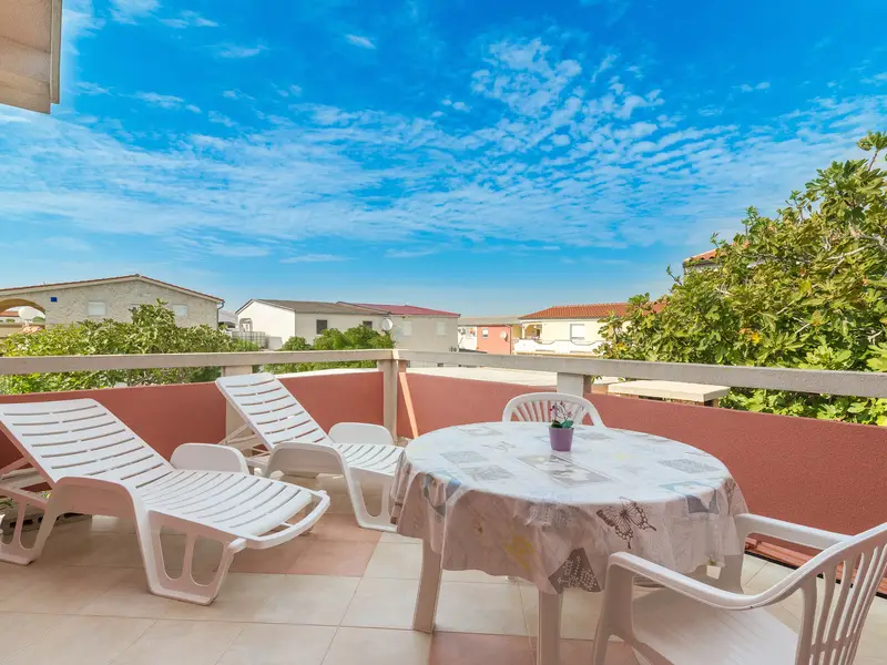 Diese Wohnung liegt nur 150 bis zum Kieselstrand, in der Gegend von Vir genannt Soldatica entfernt.Das 38 m2 Studio im ersten Stock des Hauses besteht aus einer Wohn- und Essbereich mit Kochnische, ein Doppelbett und eine Schlafcouch für eine weitere Person. Zur Wohnung gehört ein Badezimmer mit Duschkabine. Der 12m2 große Balkon mit Tisch und Stühlen bietet Platz für Versammlungen zum Frühstück oder Abendessen. Klimaanlage, Internetzugang, SAT-TV und Grill im Innenhof wo Sie köstliche Mahlzeiten für Ihre Familie zuzubereiten können verfügbar.