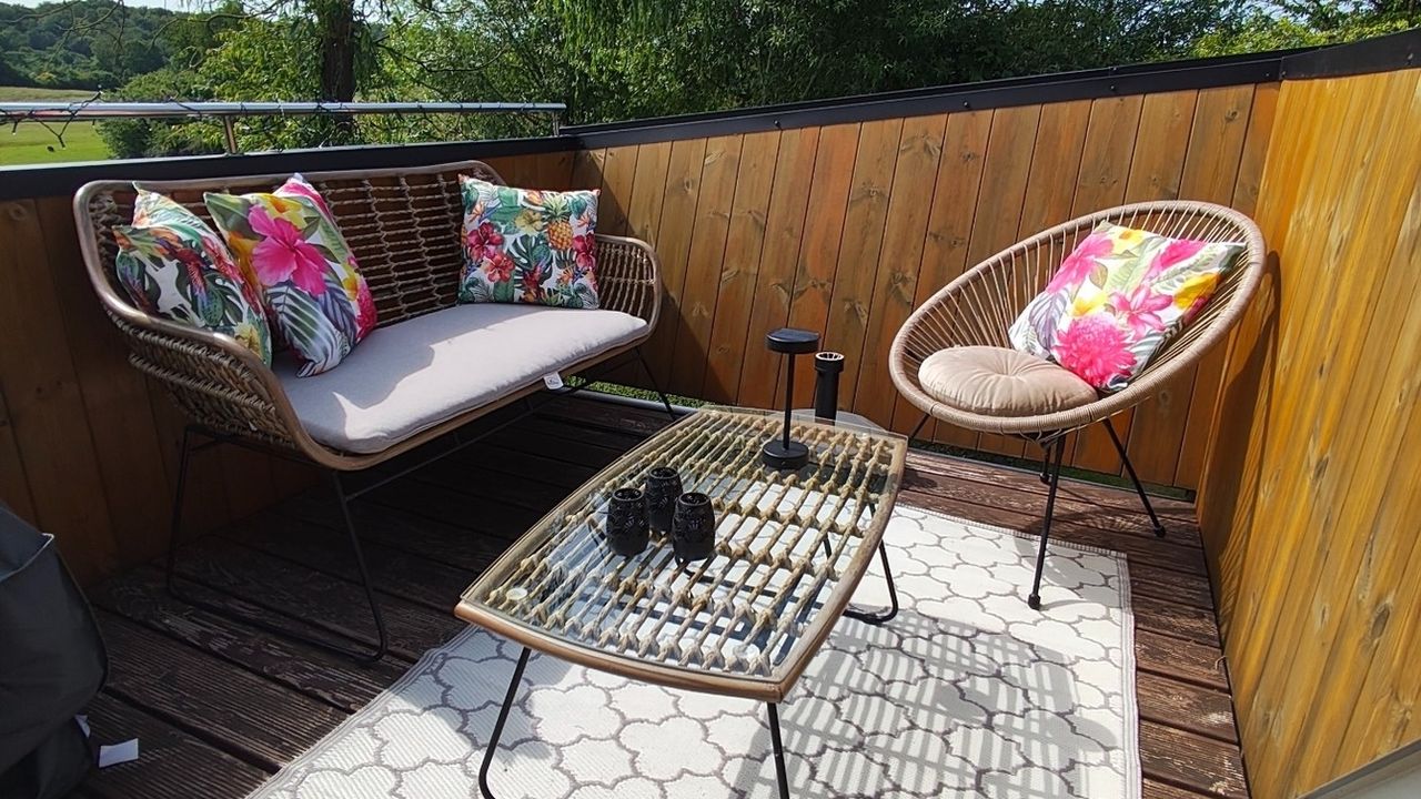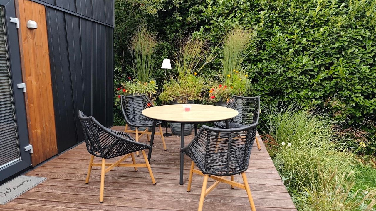 Dachterrasse im Tiny House sowie eine grosse Outdoor-Infinity Terrasse, Sitzgelegenheit mit Essplatt OutdoorReinigungsgebühr und Kurtaxe werden Vorort abgerechnet