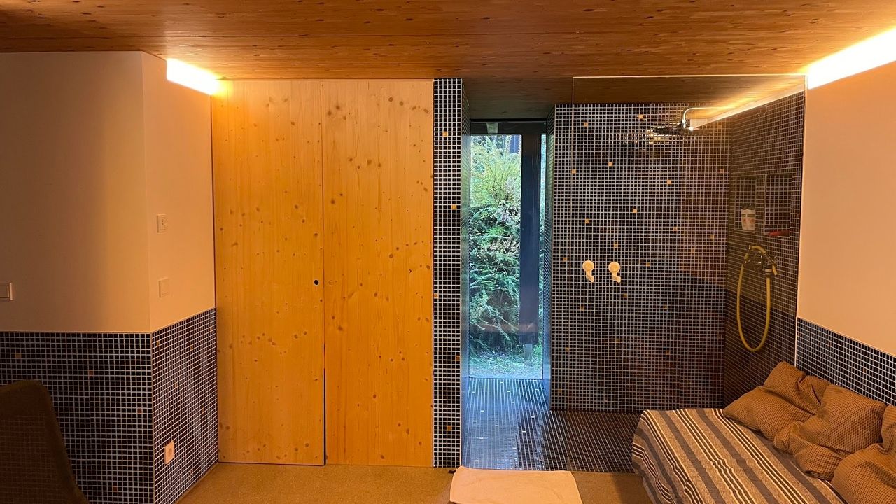 Die Sauna bietet Platz für bis zu 8 Personen.