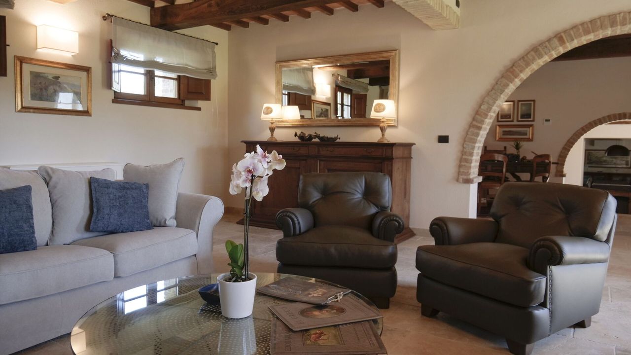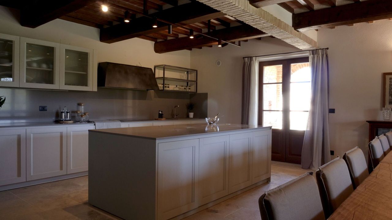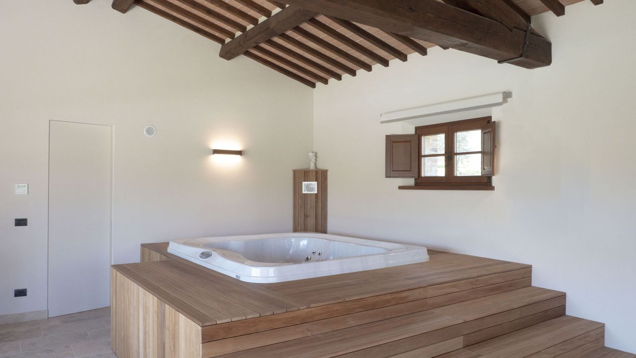 Die Hauptvilla erstreckt sich über drei Ebenen: Im Erdgeschoss befinden sich der Eingang, eine große Küche mit allem, was man zum Kochen braucht, ein Wohnzimmer und ein Badezimmer. Im ersten Stock gibt es 5 Doppelzimmer, alle mit eigenem Bad und Kühlschrank. Das letzte Stockwerk ist ein Untergeschoss, in dem sich eine zweite voll ausgestattete Küche, ein Wohnzimmer mit Billardtisch und ein Wohnbereich mit einer Ausstellung typisch toskanischer handwerklich hergestellter Salami befinden. Hier können auch Verkostungen von Weinen und typischen Produkten vor Ort angefragt werden (nach Absprache mit dem Eigentümer). Ein Gästebad vervollständigt diese Etage.