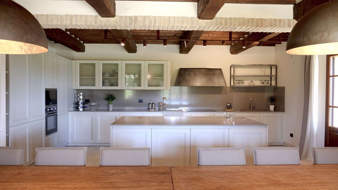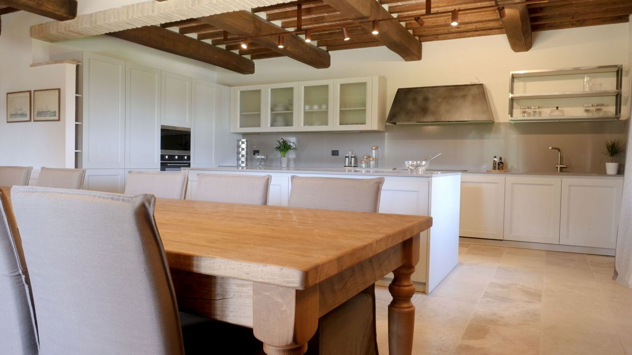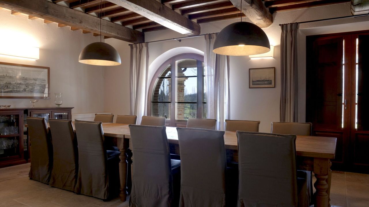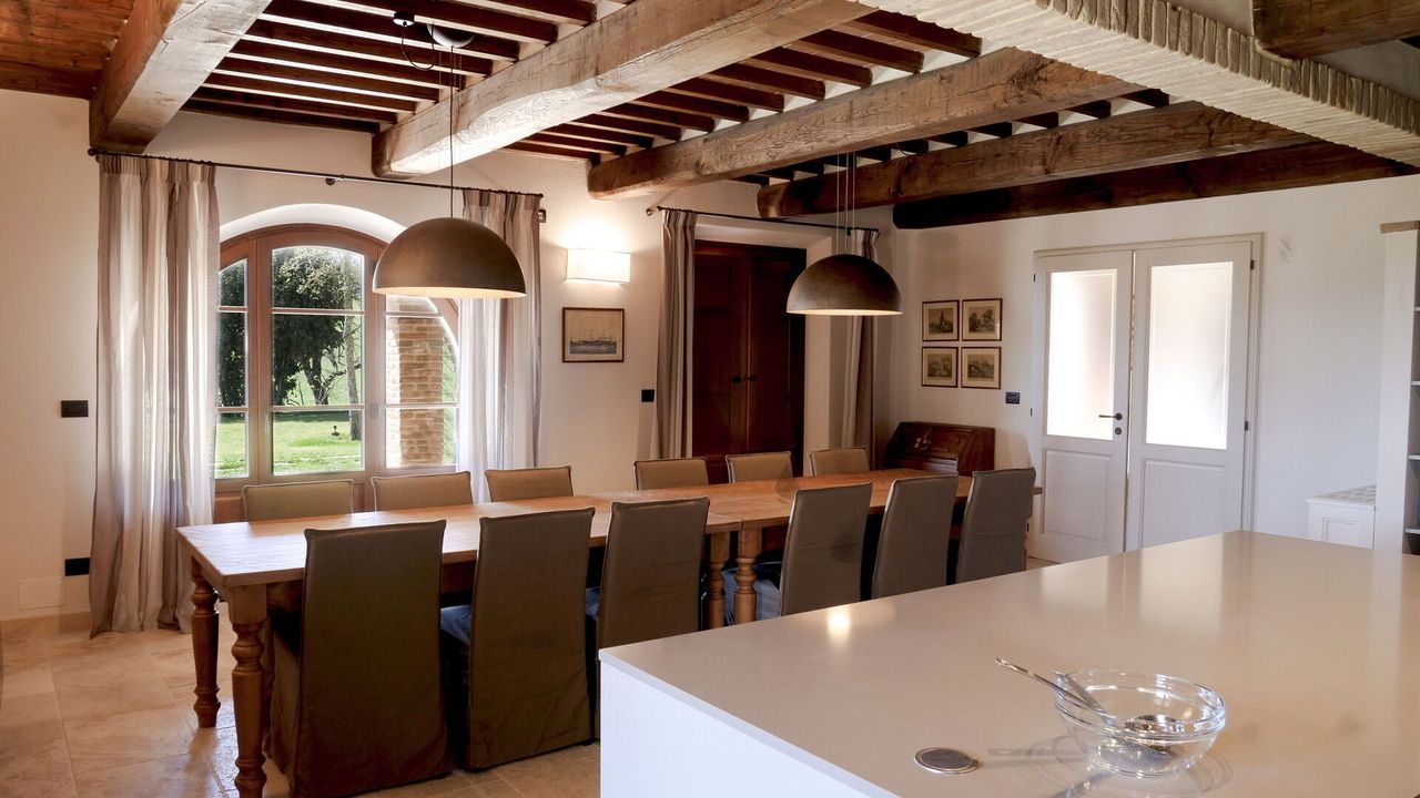 Die Hauptvilla erstreckt sich über drei Ebenen: Im Erdgeschoss befinden sich der Eingang, eine große Küche mit allem, was man zum Kochen braucht, ein Wohnzimmer und ein Badezimmer. Im ersten Stock gibt es 5 Doppelzimmer, alle mit eigenem Bad und Kühlschrank. Das letzte Stockwerk ist ein Untergeschoss, in dem sich eine zweite voll ausgestattete Küche, ein Wohnzimmer mit Billardtisch und ein Wohnbereich mit einer Ausstellung typisch toskanischer handwerklich hergestellter Salami befinden. Hier können auch Verkostungen von Weinen und typischen Produkten vor Ort angefragt werden (nach Absprache mit dem Eigentümer). Ein Gästebad vervollständigt diese Etage.